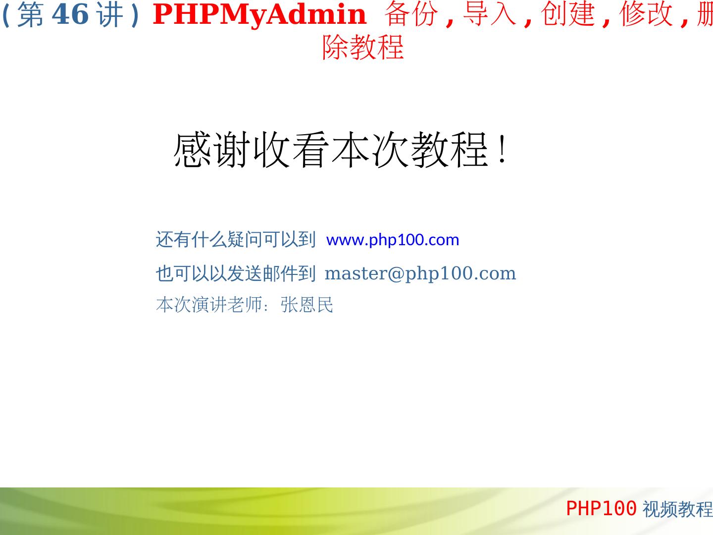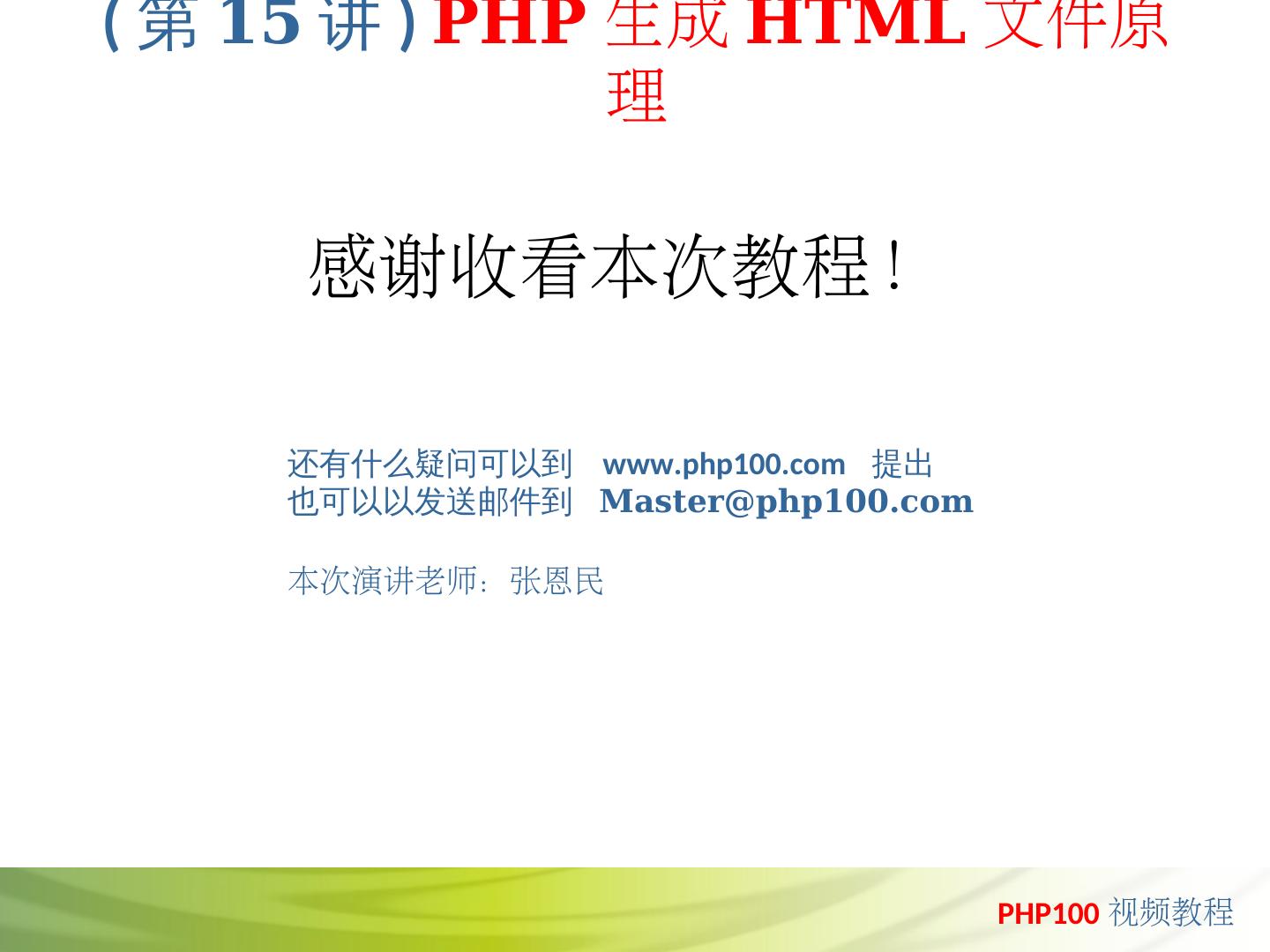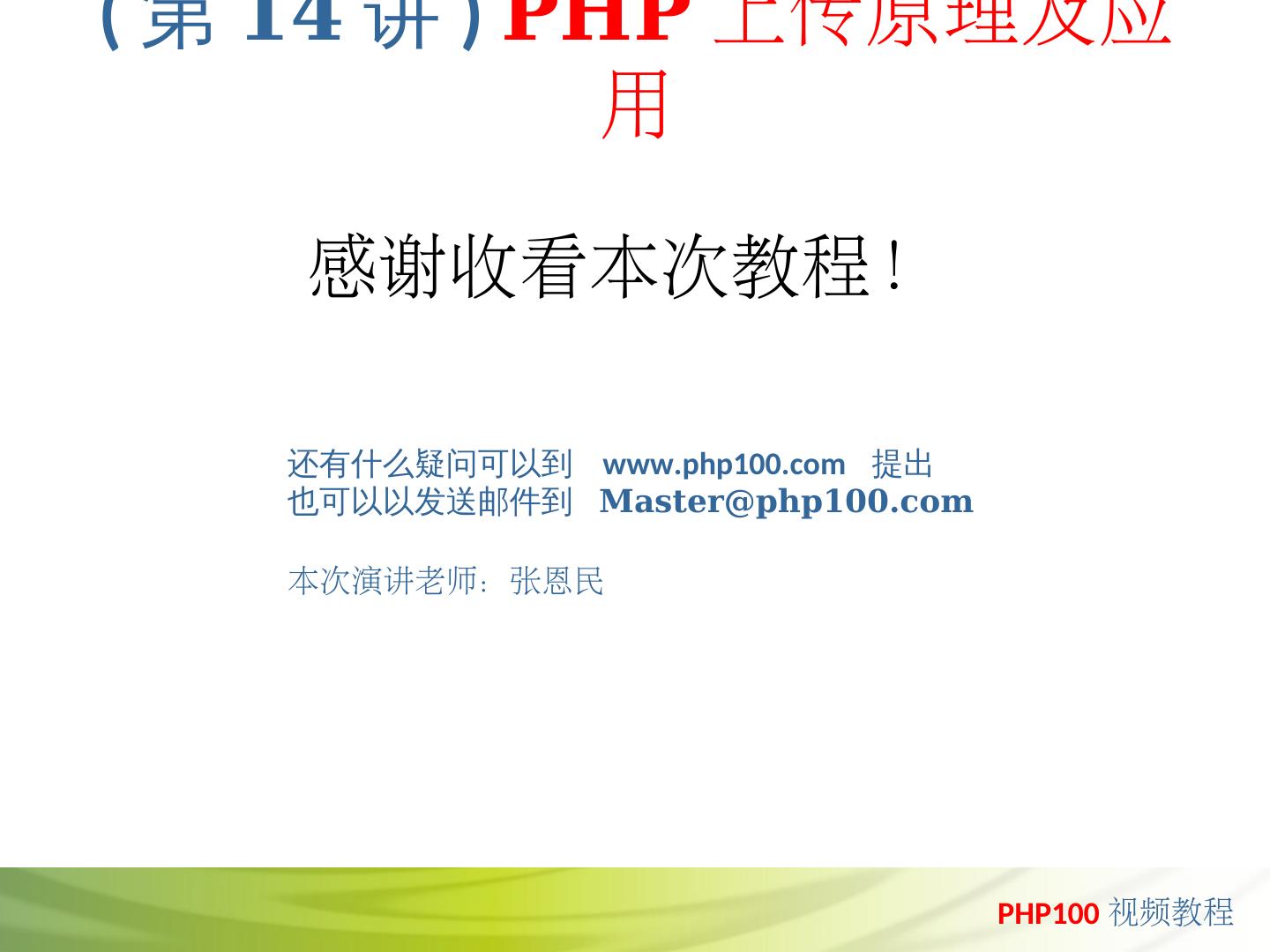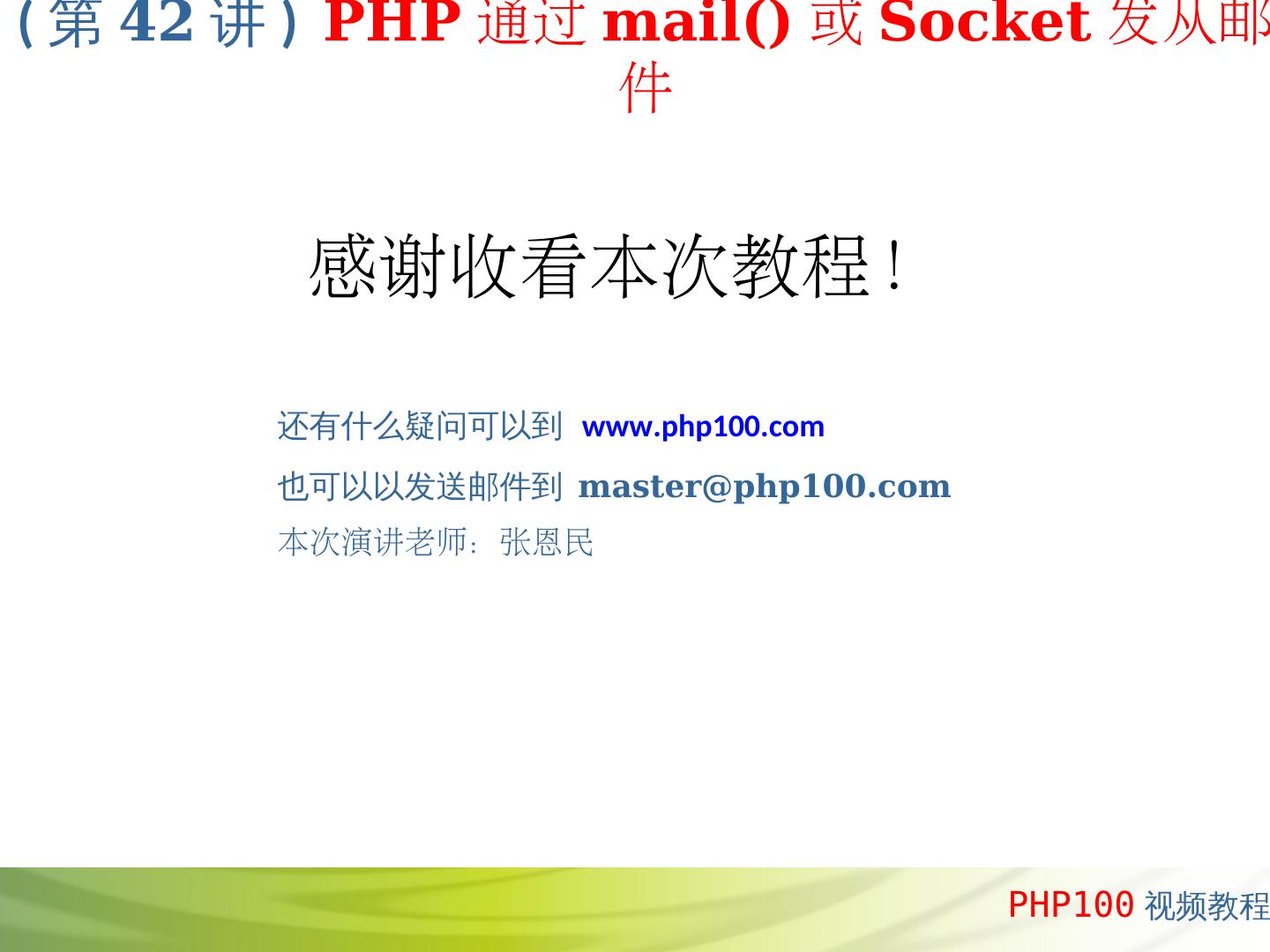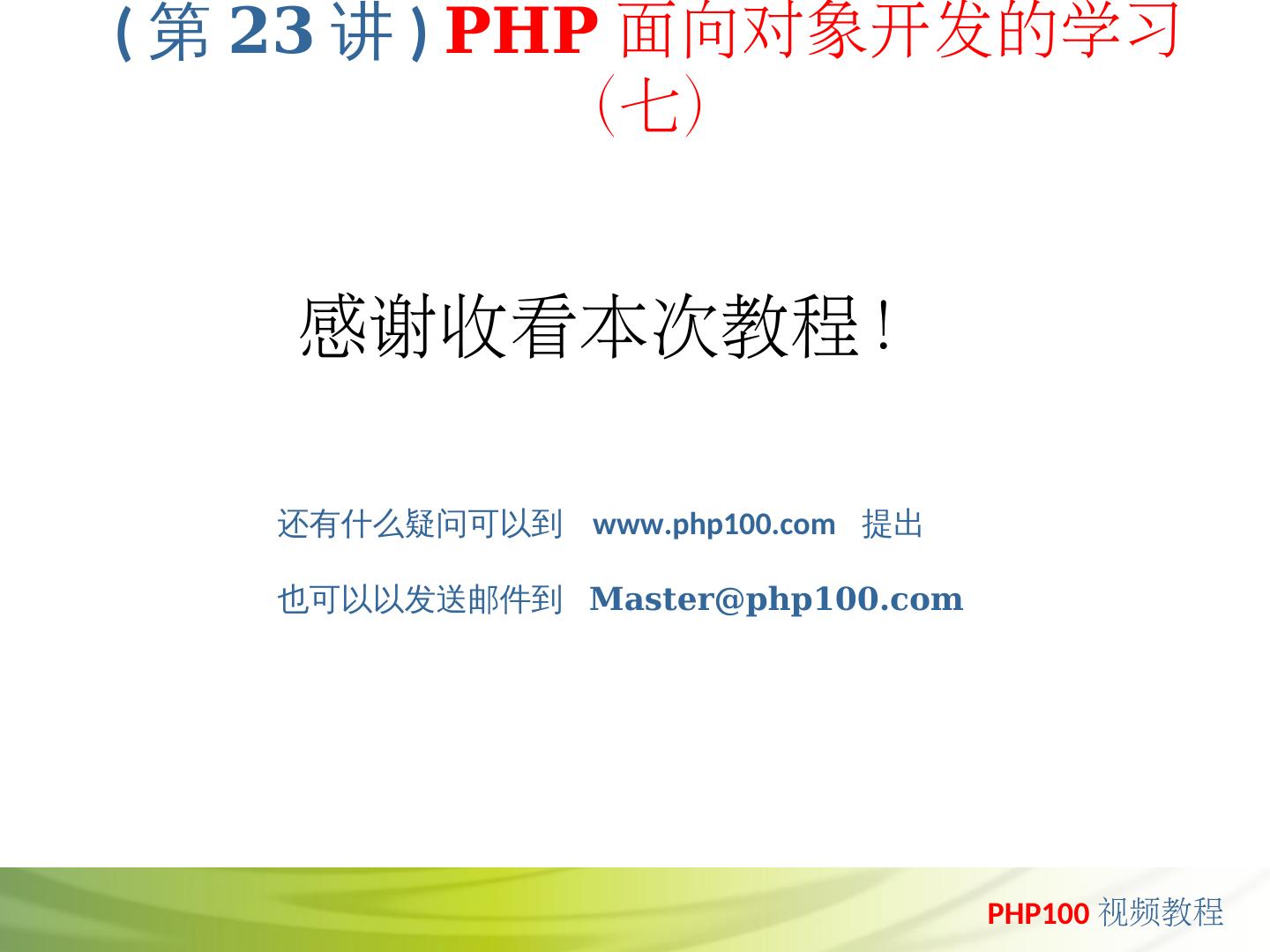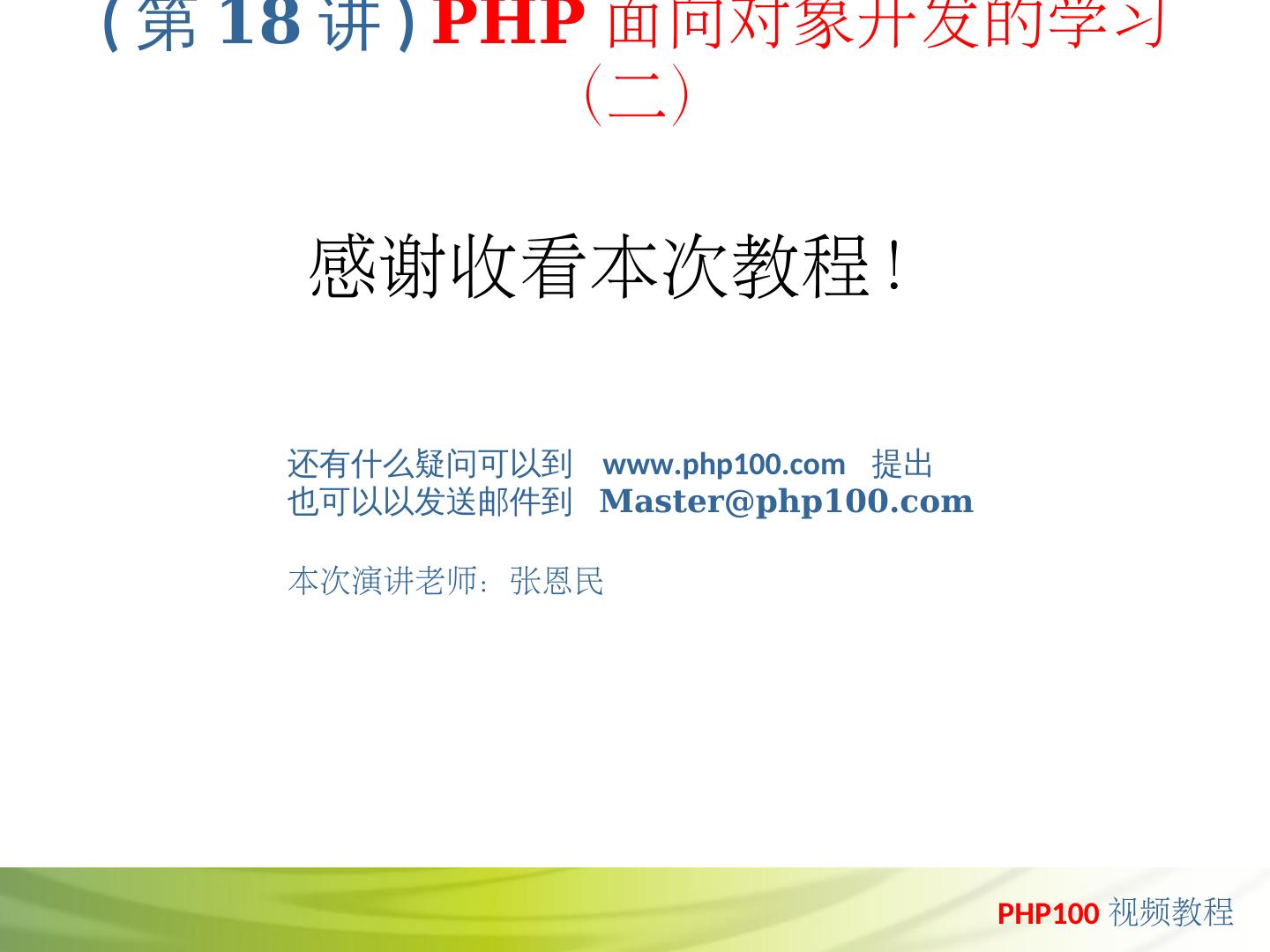 20 .( 第三讲 ) 常用 PHP 运算类型介绍与应用 感谢收看本次教程! 还有什么疑问可以到 www.php100.com 提出 也可以以发送邮件到 haowubai@hotmail.com ( msn ) 本次演讲老师:张恩民 PHP100 视频教程