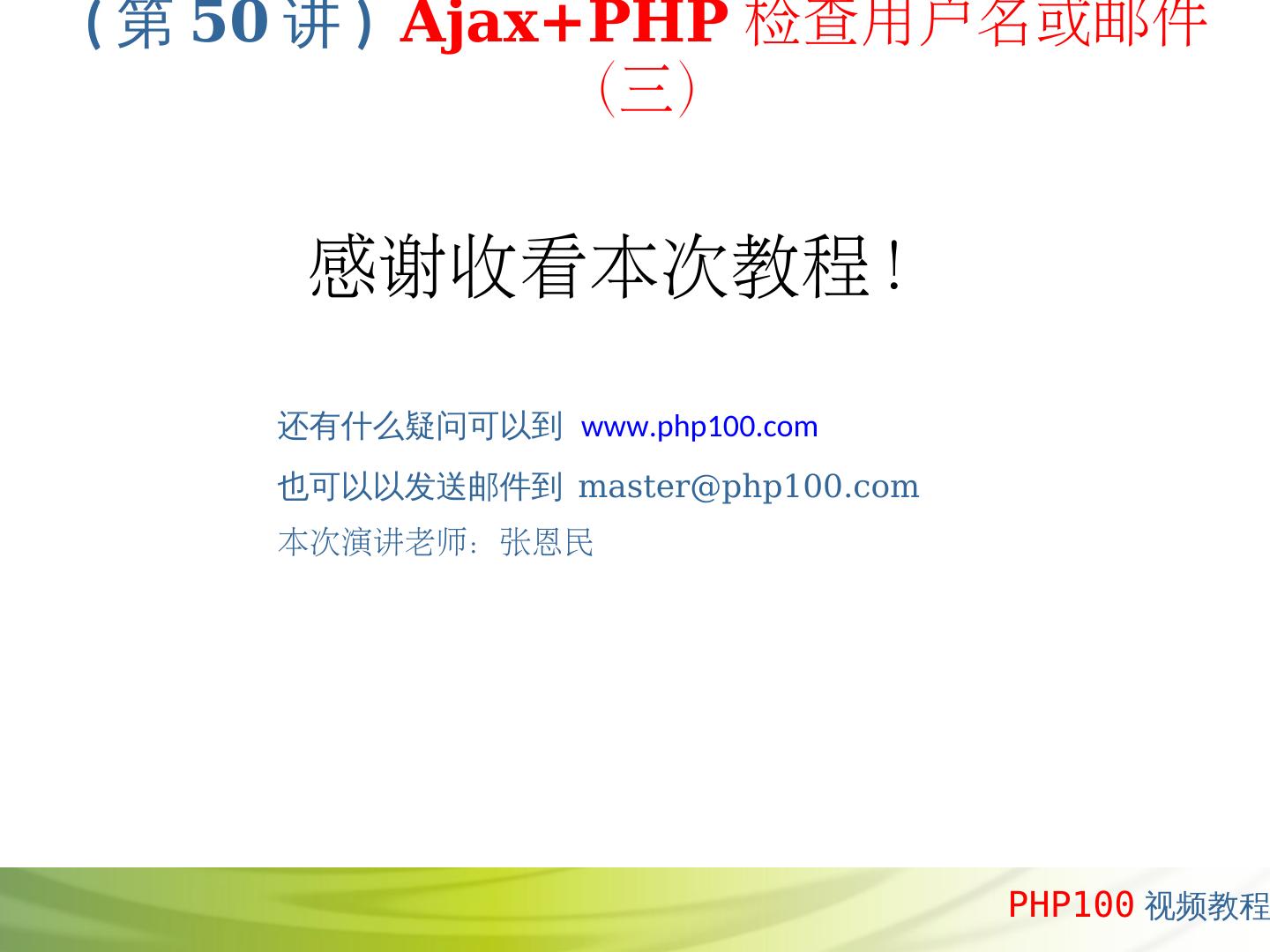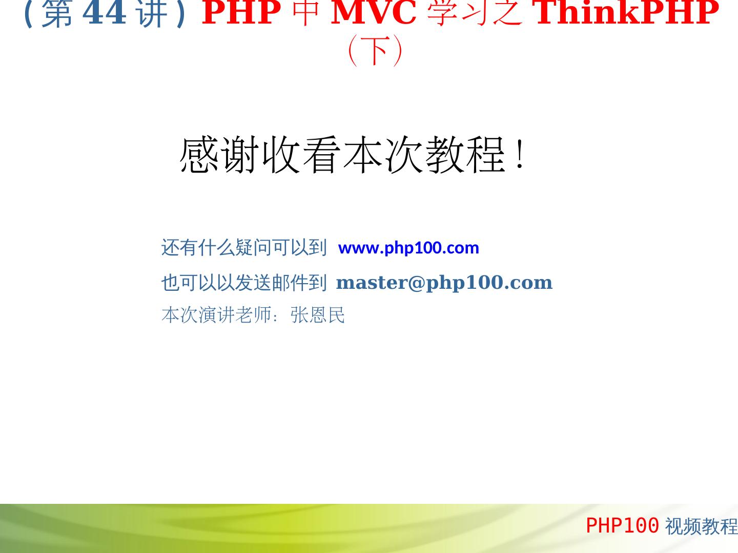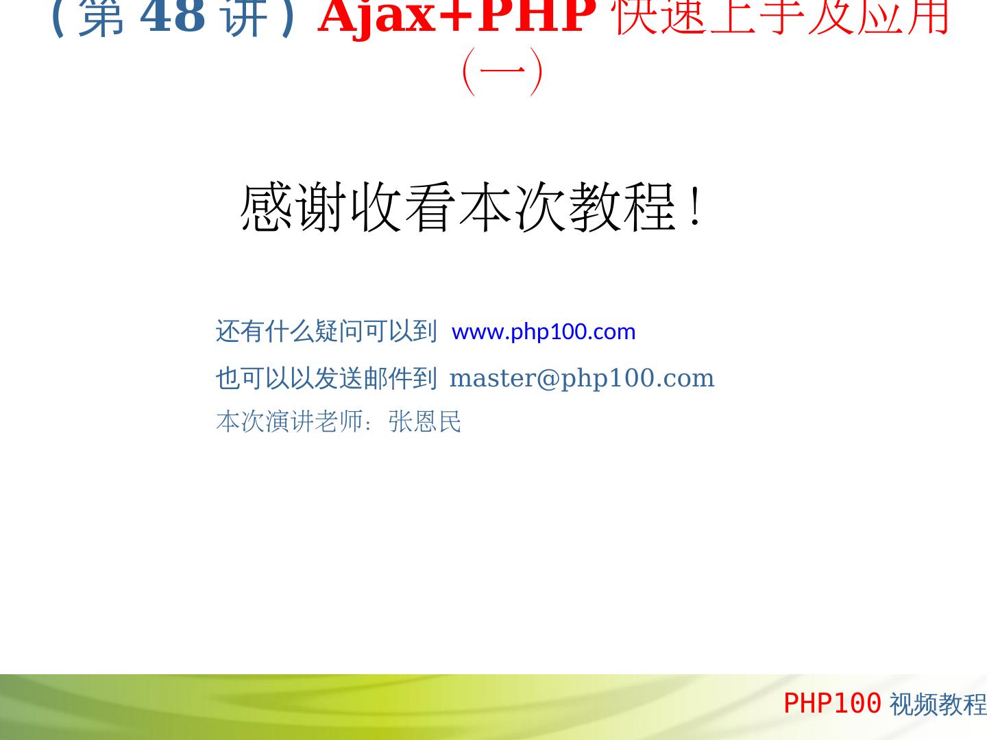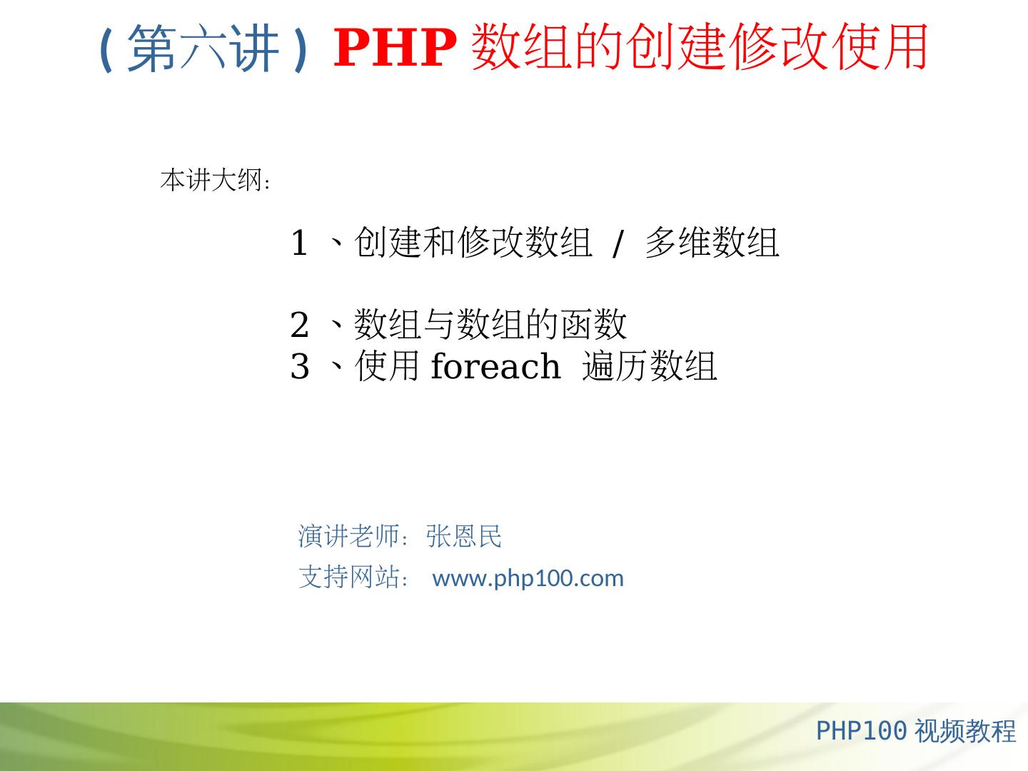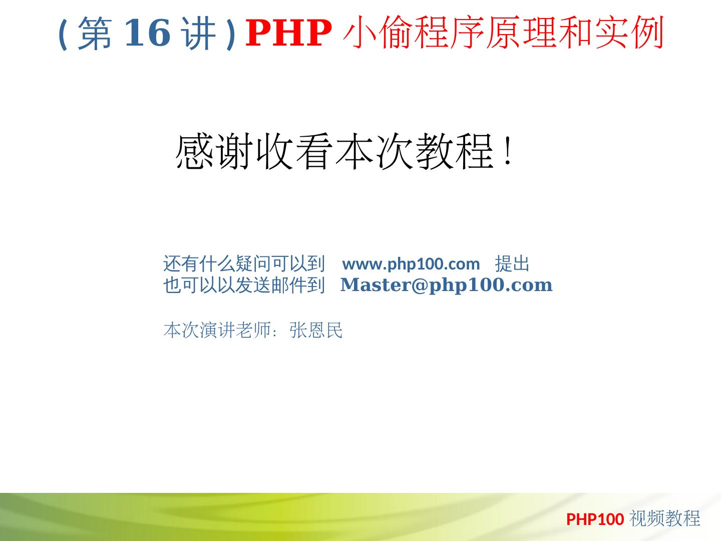 20 .( 第三讲 ) 常用 PHP 运算类型介绍与应用 感谢收看本次教程! 还有什么疑问可以到 www.php100.com 提出 也可以以发送邮件到 haowubai@hotmail.com ( msn ) 本次演讲老师:张恩民 PHP100 视频教程