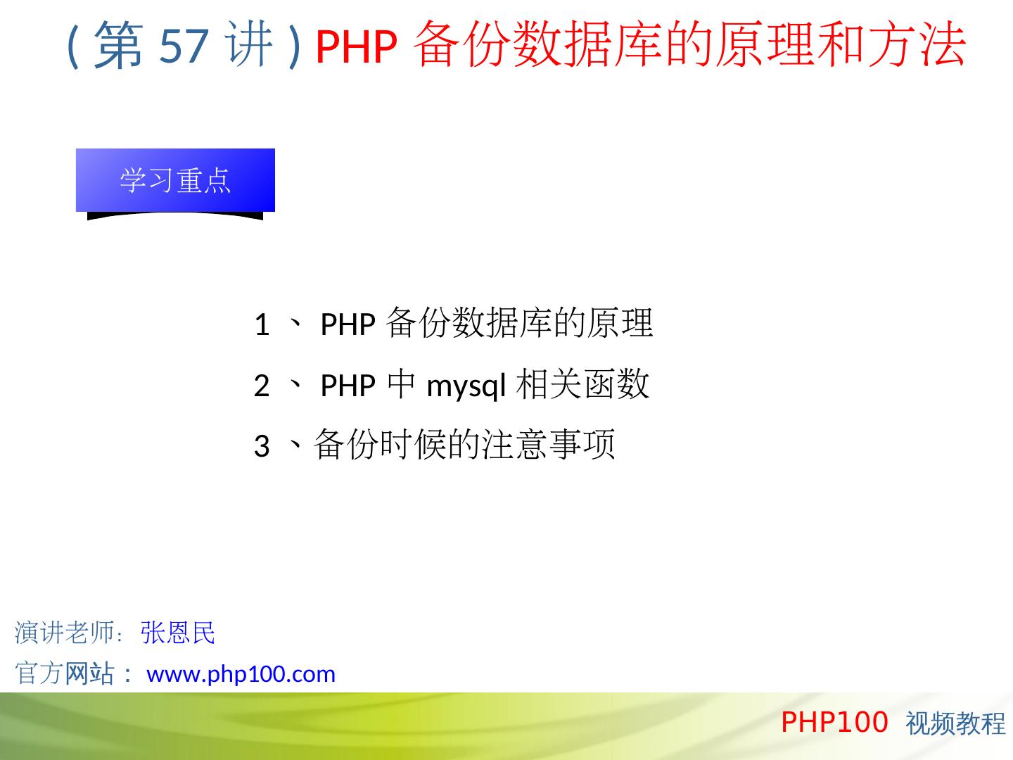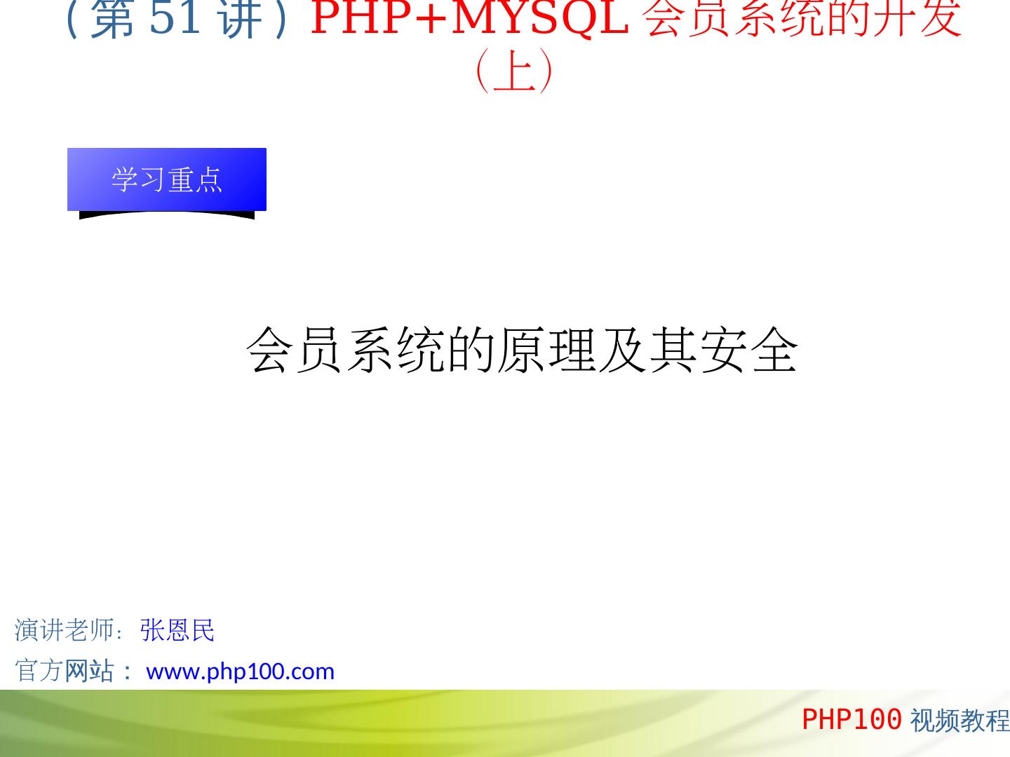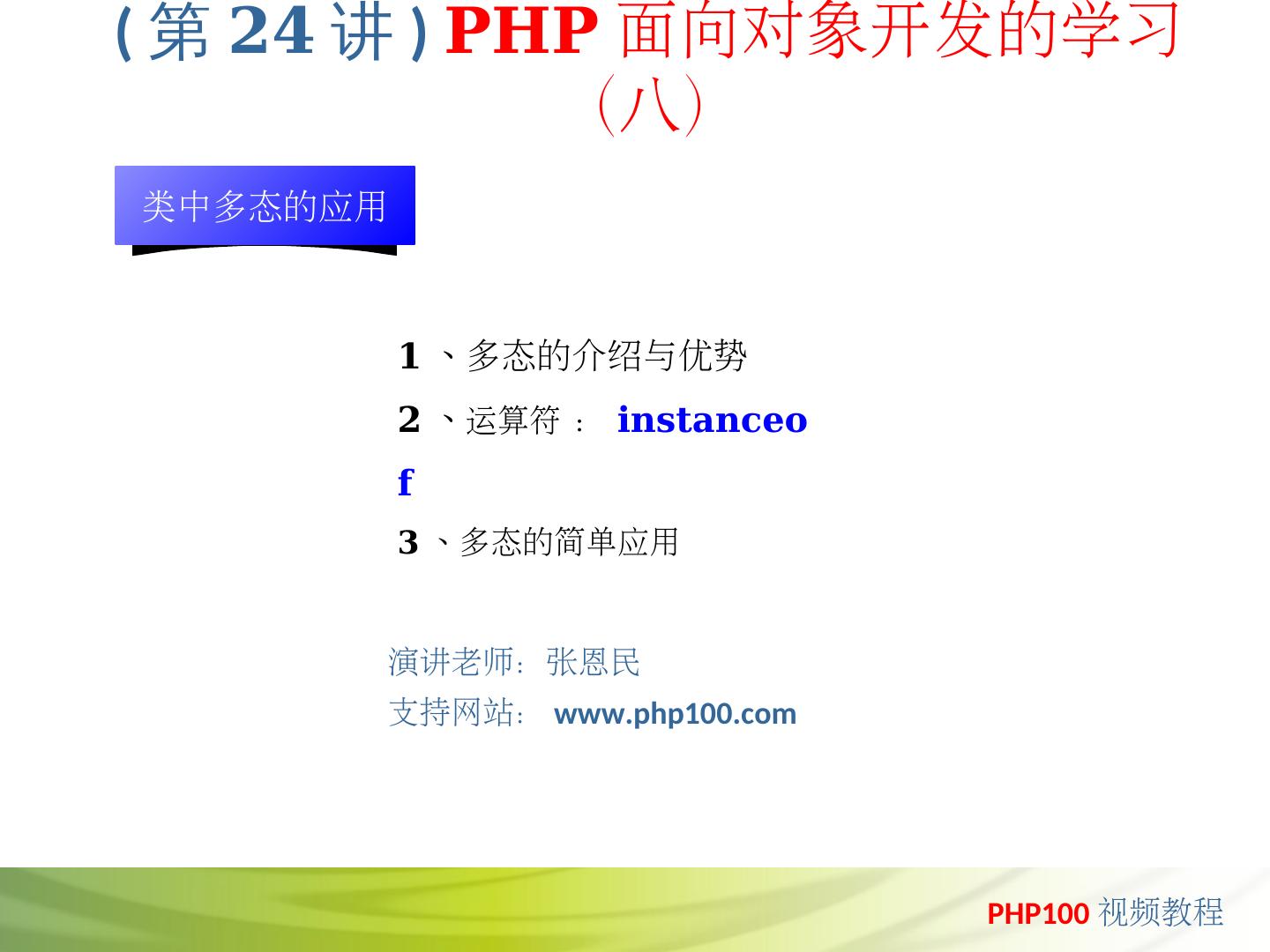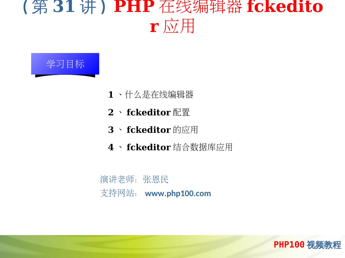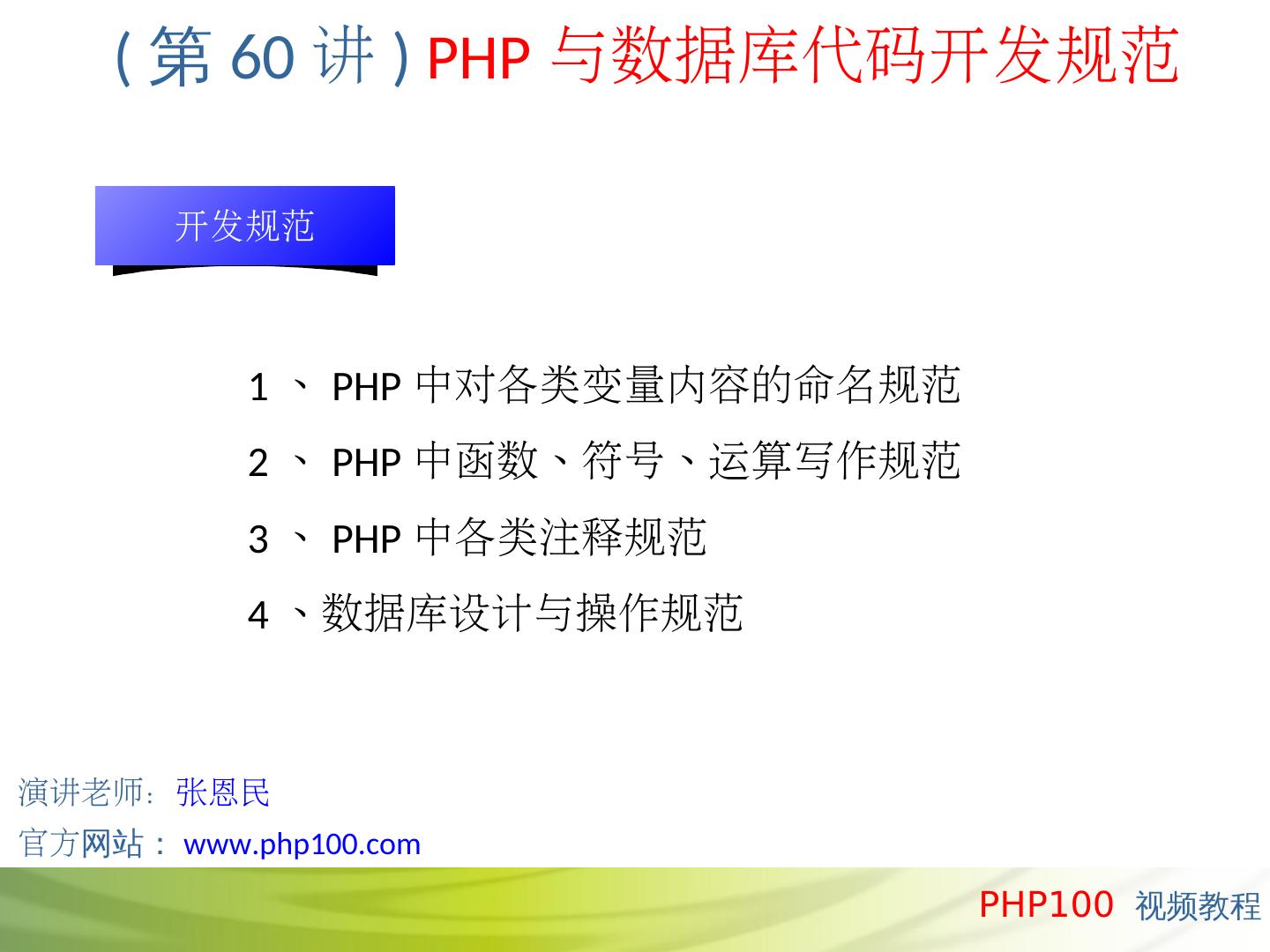 20 .( 第三讲 ) 常用 PHP 运算类型介绍与应用 感谢收看本次教程! 还有什么疑问可以到 www.php100.com 提出 也可以以发送邮件到 haowubai@hotmail.com ( msn ) 本次演讲老师:张恩民 PHP100 视频教程