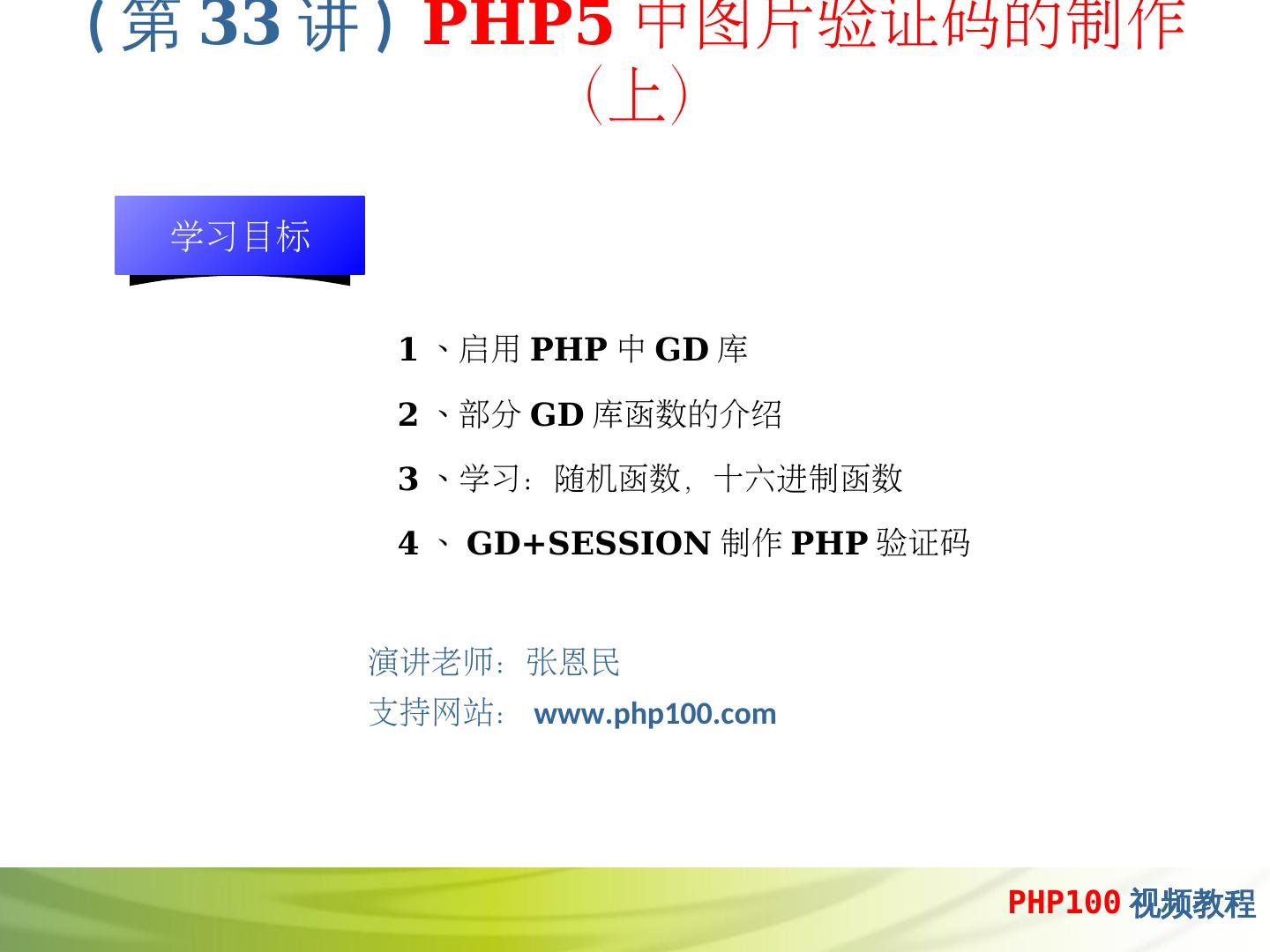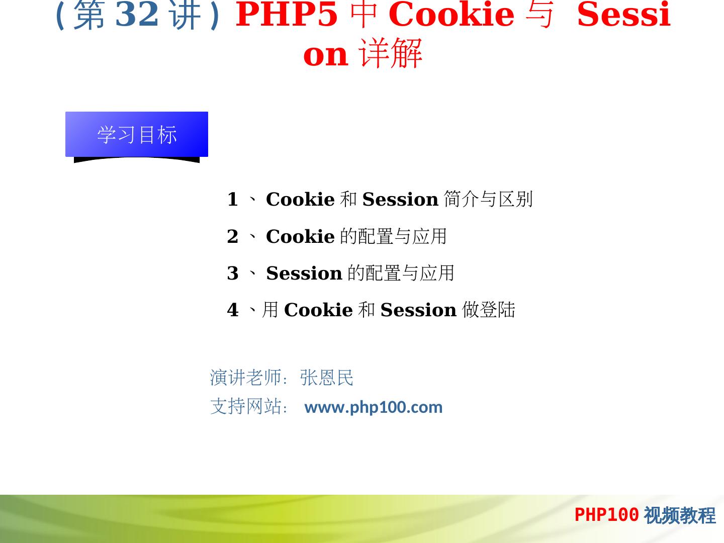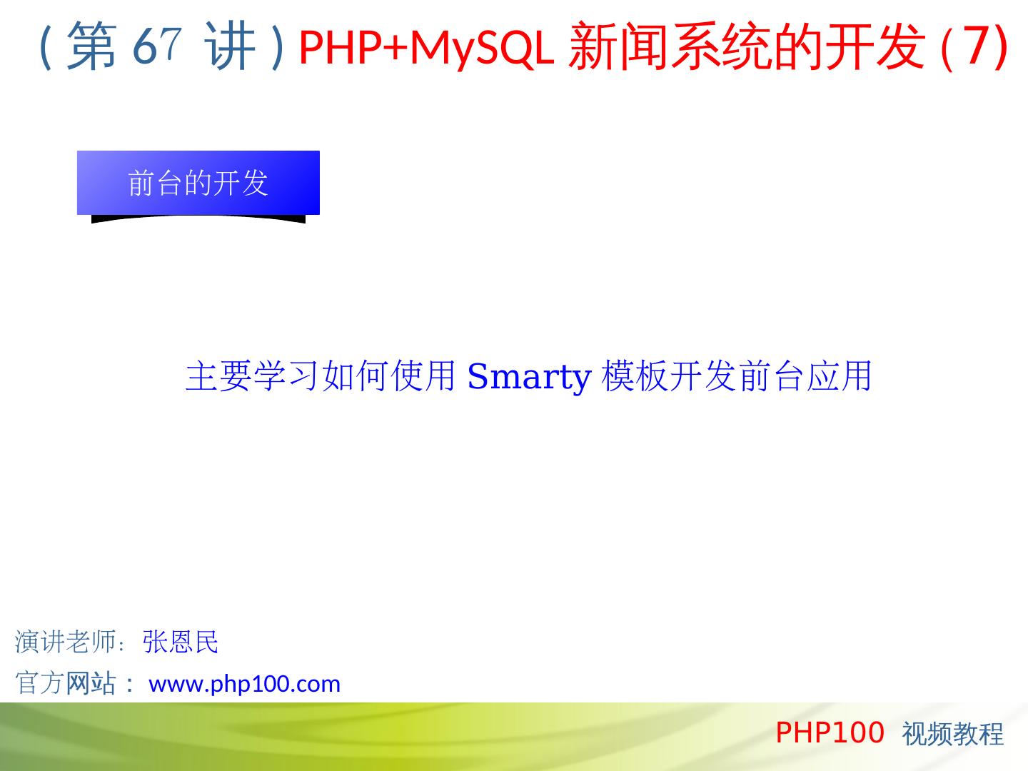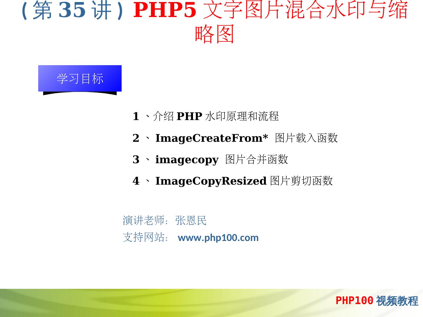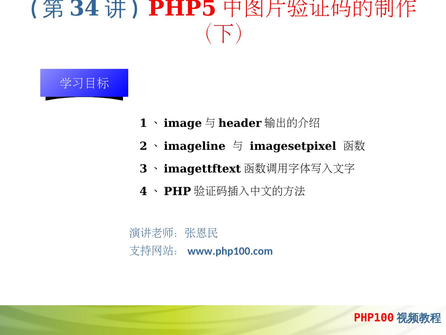 20 .( 第三讲 ) 常用 PHP 运算类型介绍与应用 感谢收看本次教程! 还有什么疑问可以到 www.php100.com 提出 也可以以发送邮件到 haowubai@hotmail.com ( msn ) 本次演讲老师:张恩民 PHP100 视频教程