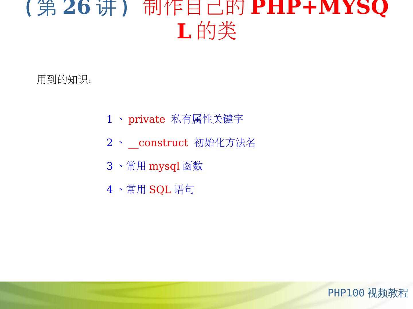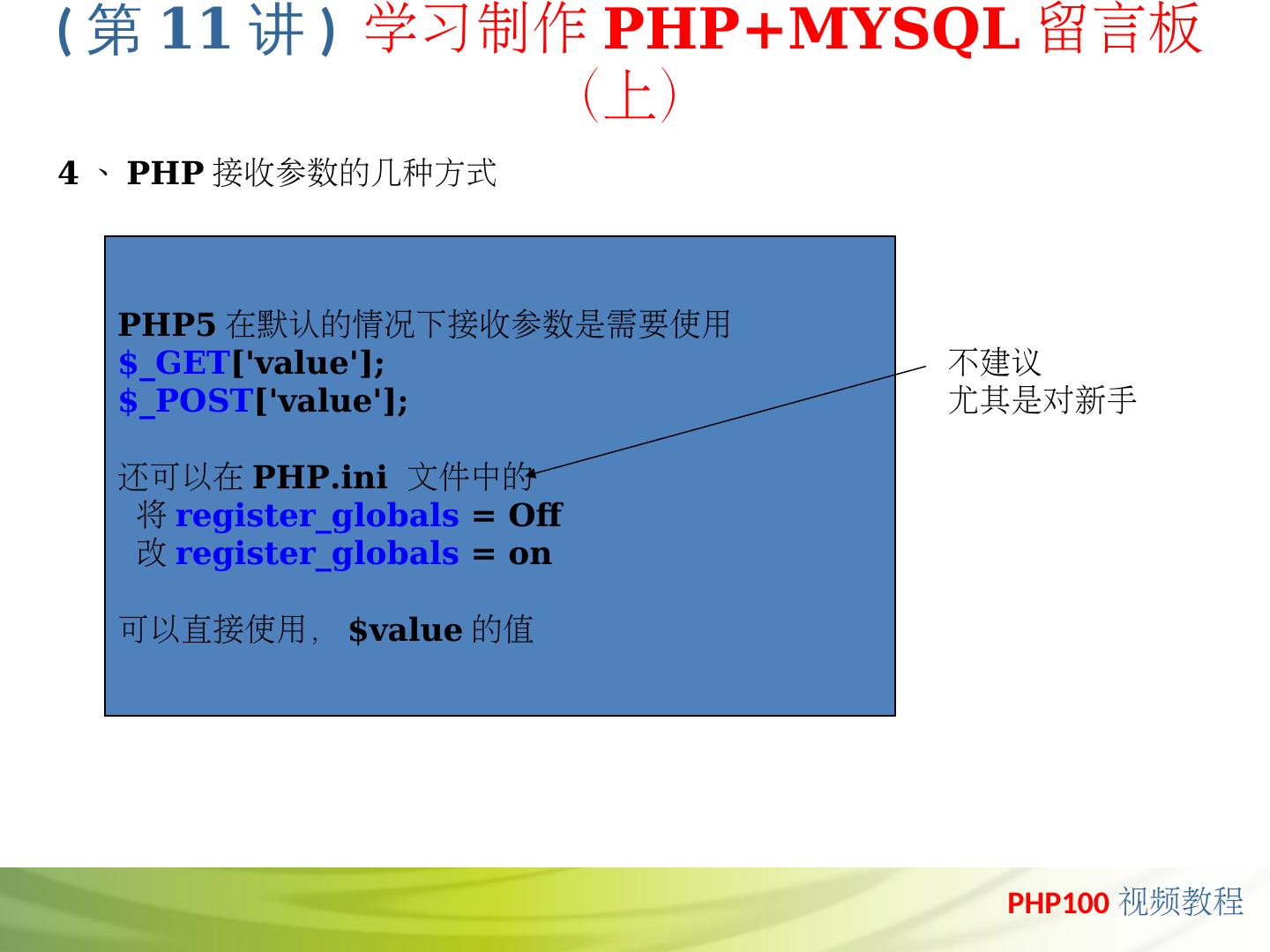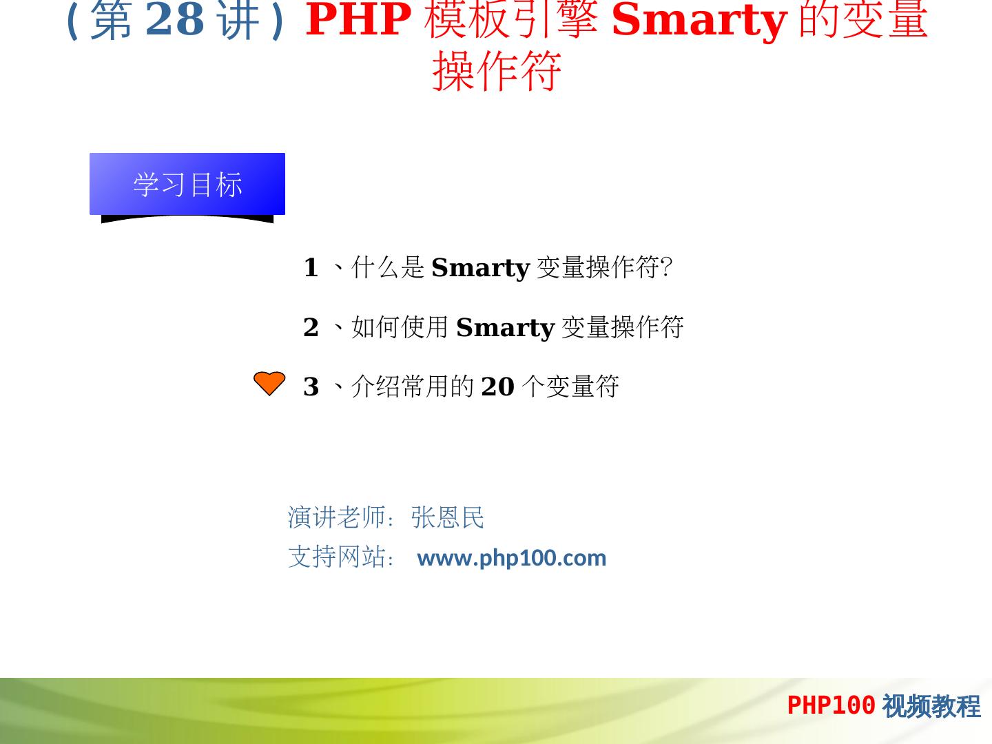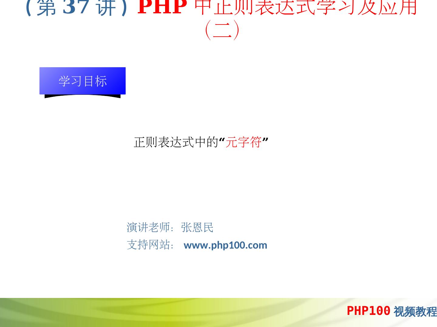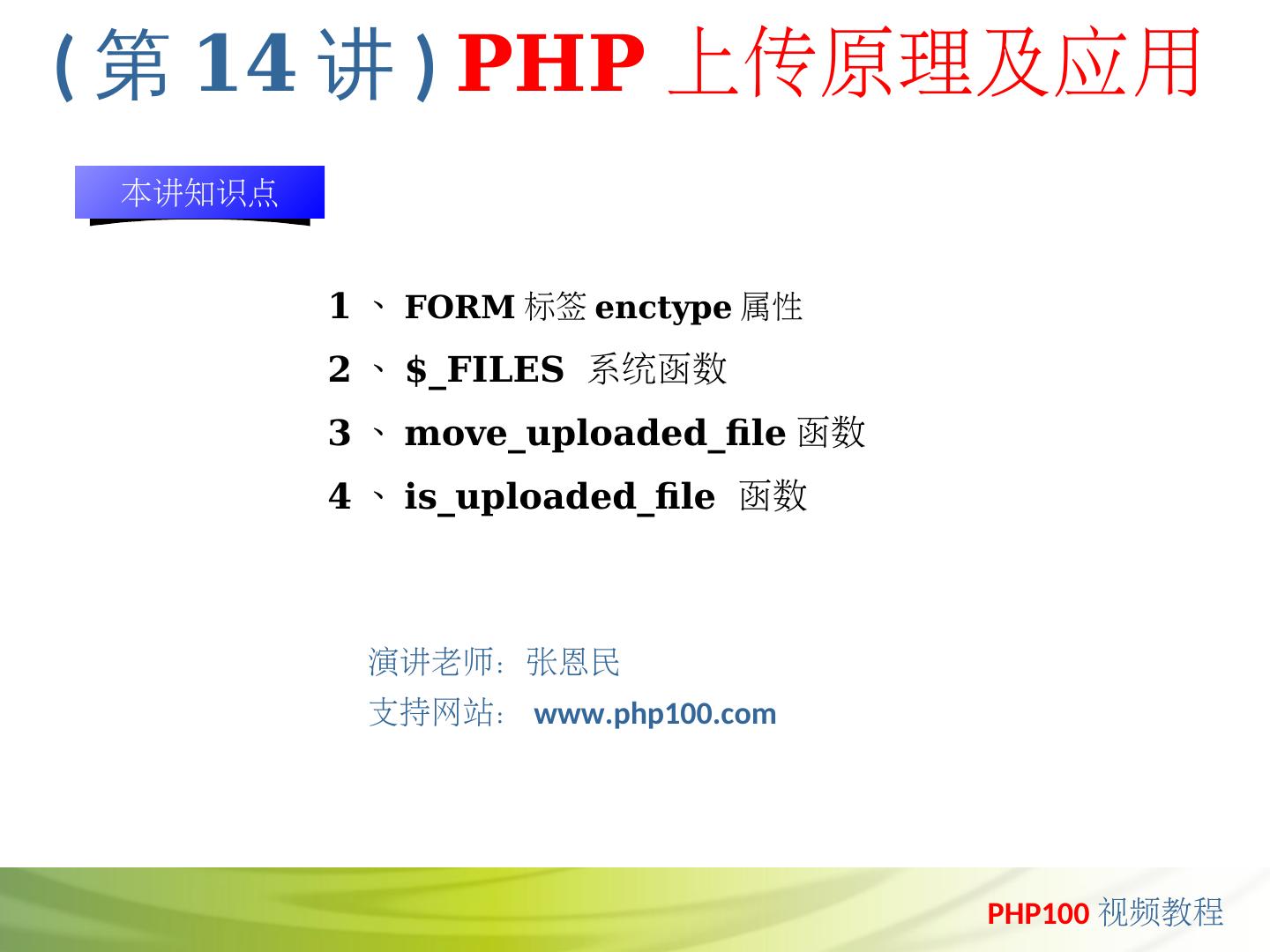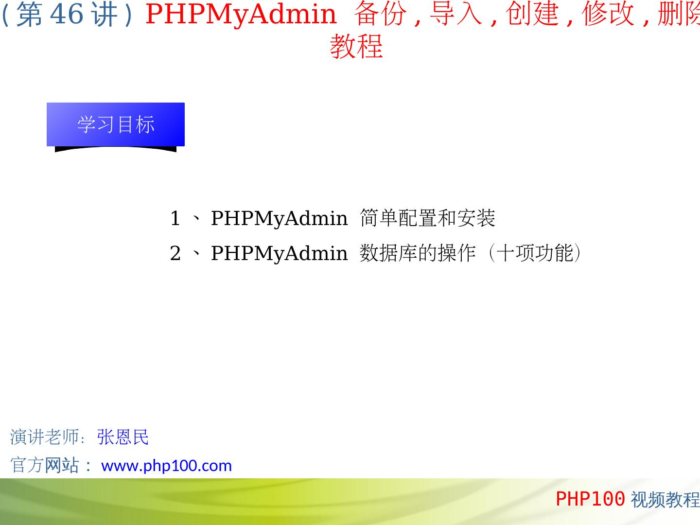 20 .( 第三讲 ) 常用 PHP 运算类型介绍与应用 感谢收看本次教程! 还有什么疑问可以到 www.php100.com 提出 也可以以发送邮件到 haowubai@hotmail.com ( msn ) 本次演讲老师:张恩民 PHP100 视频教程