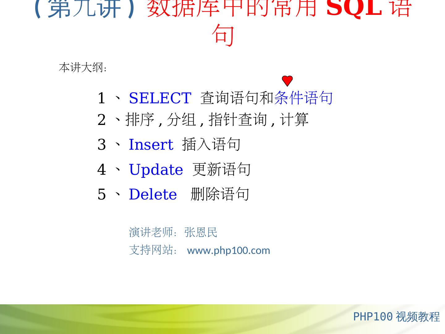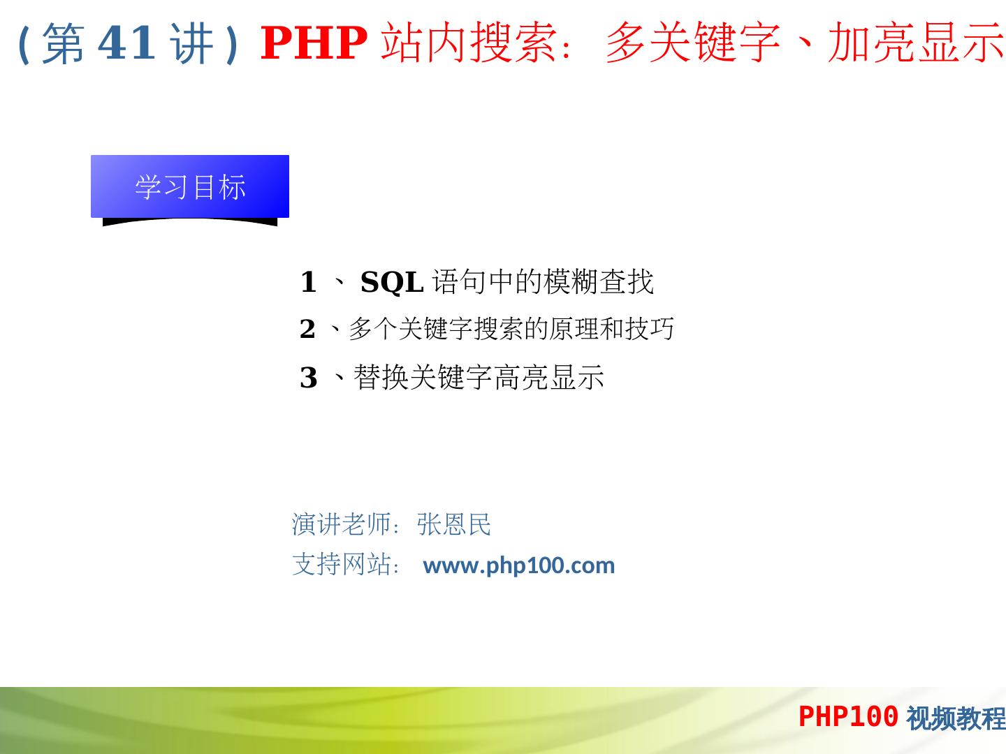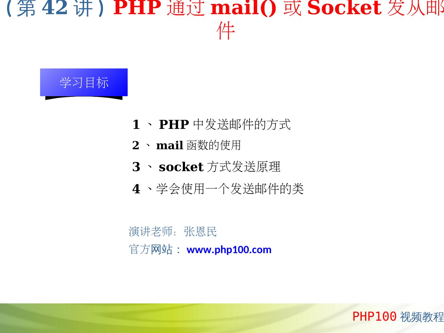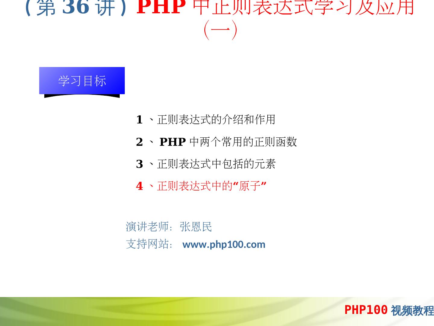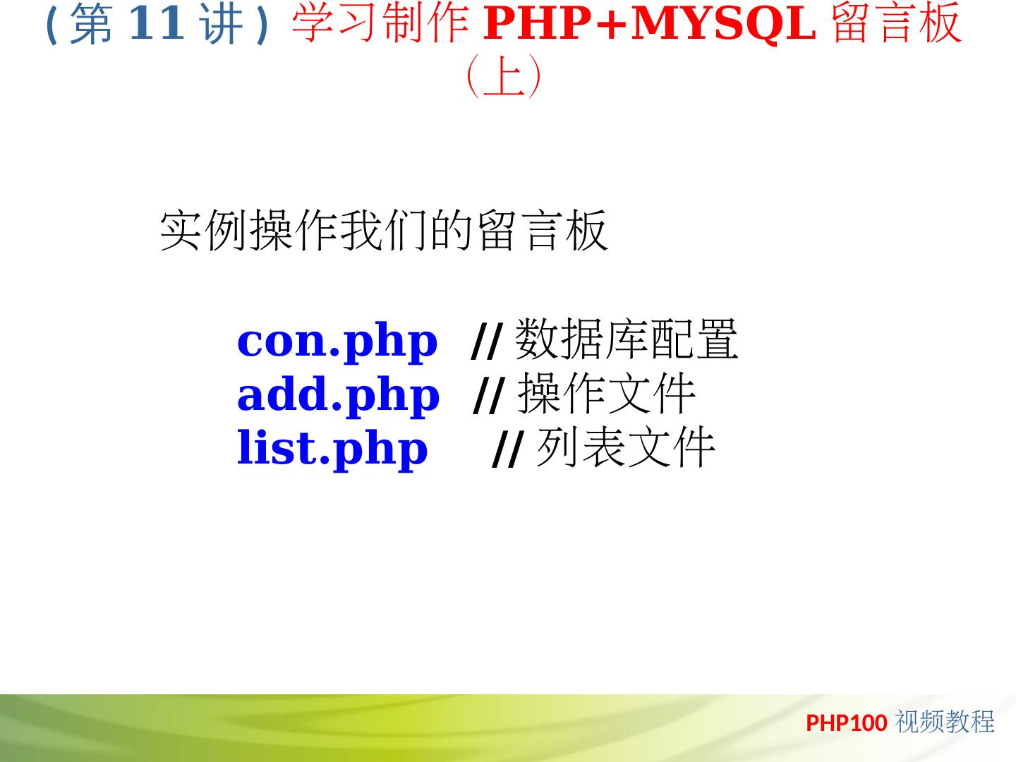 20 .( 第三讲 ) 常用 PHP 运算类型介绍与应用 感谢收看本次教程! 还有什么疑问可以到 www.php100.com 提出 也可以以发送邮件到 haowubai@hotmail.com ( msn ) 本次演讲老师:张恩民 PHP100 视频教程