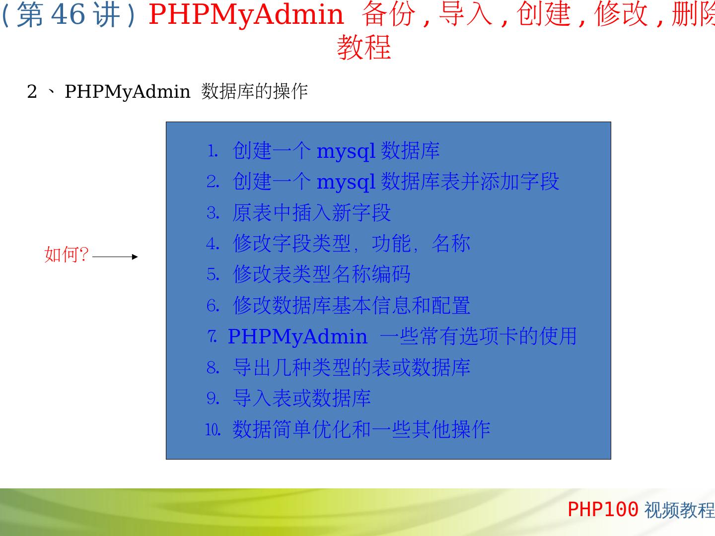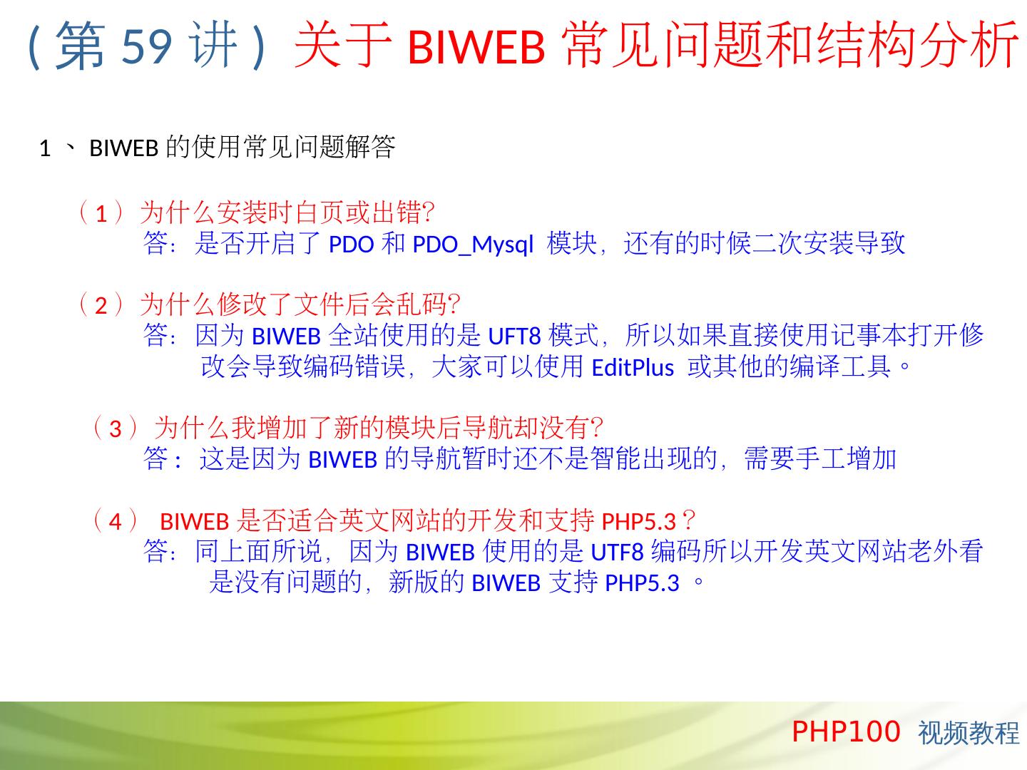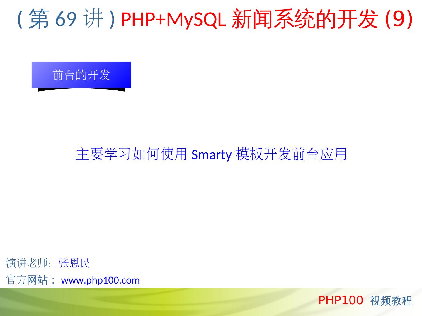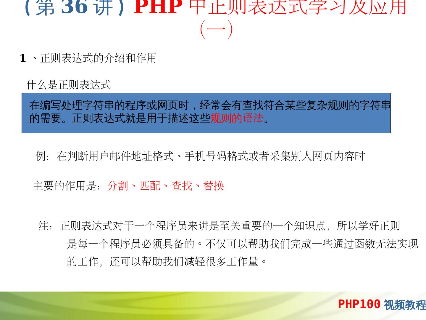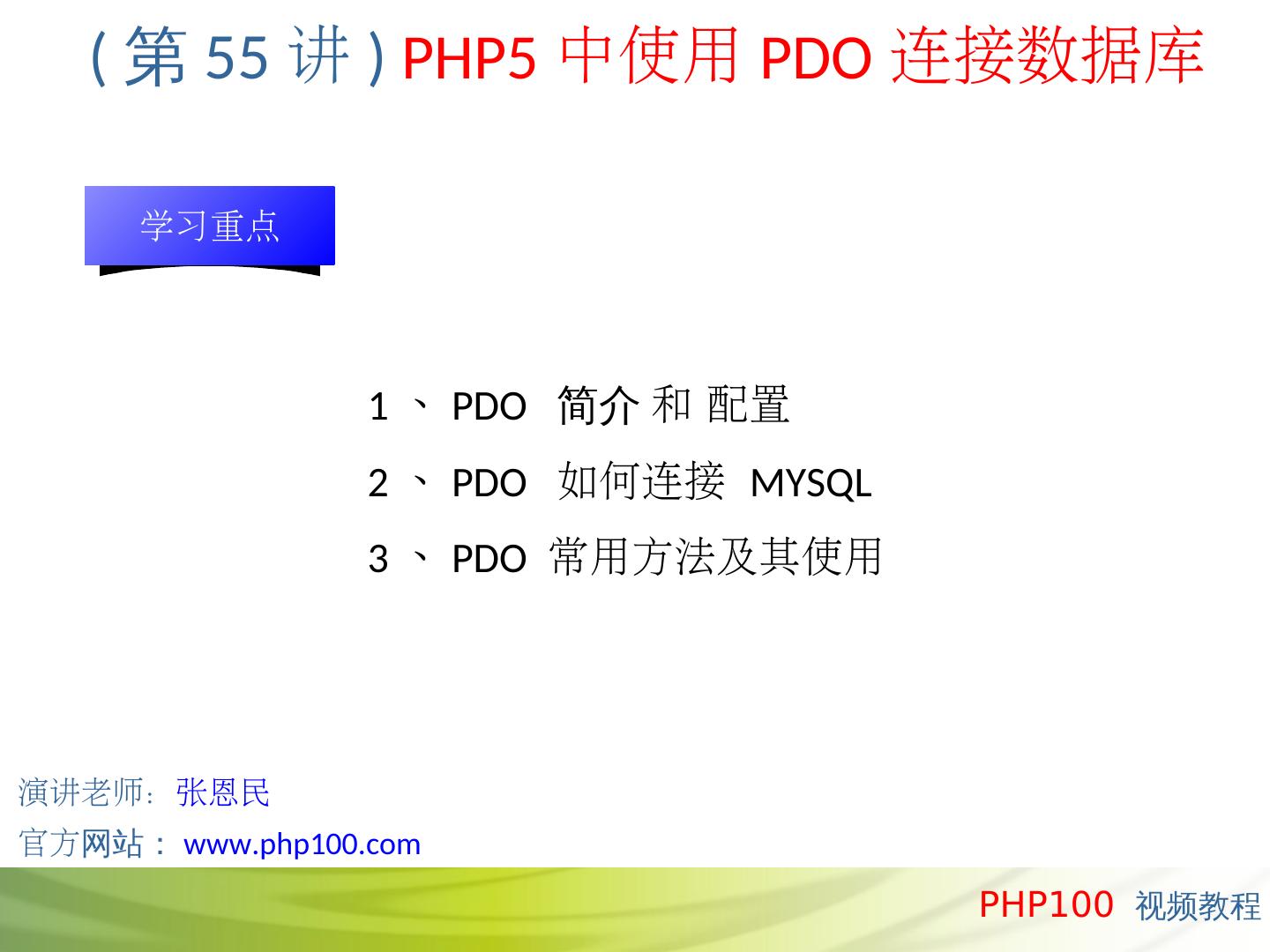 20 .( 第三讲 ) 常用 PHP 运算类型介绍与应用 感谢收看本次教程! 还有什么疑问可以到 www.php100.com 提出 也可以以发送邮件到 haowubai@hotmail.com ( msn ) 本次演讲老师:张恩民 PHP100 视频教程