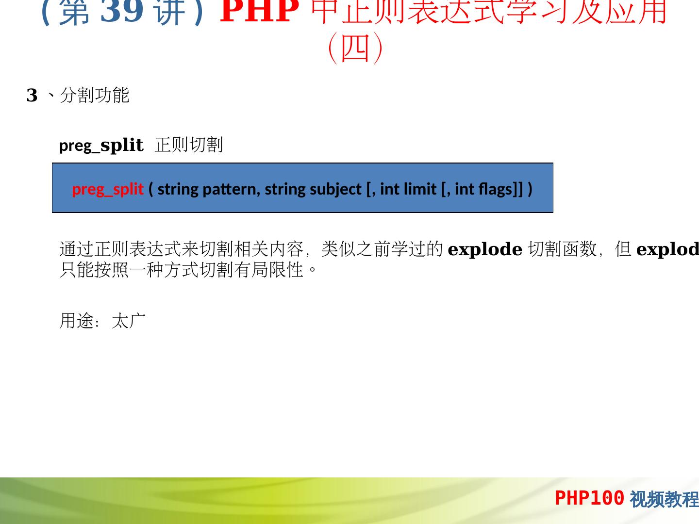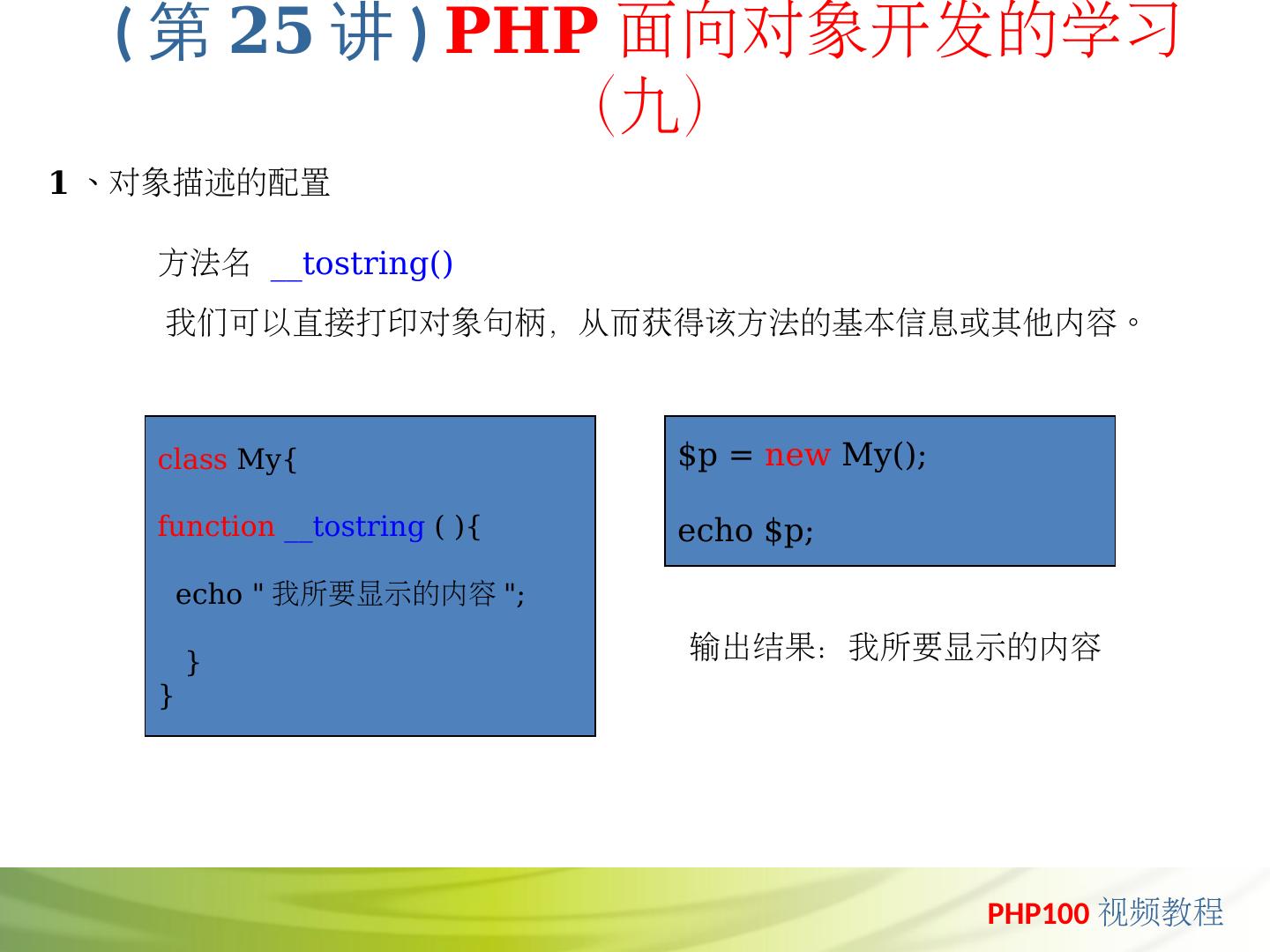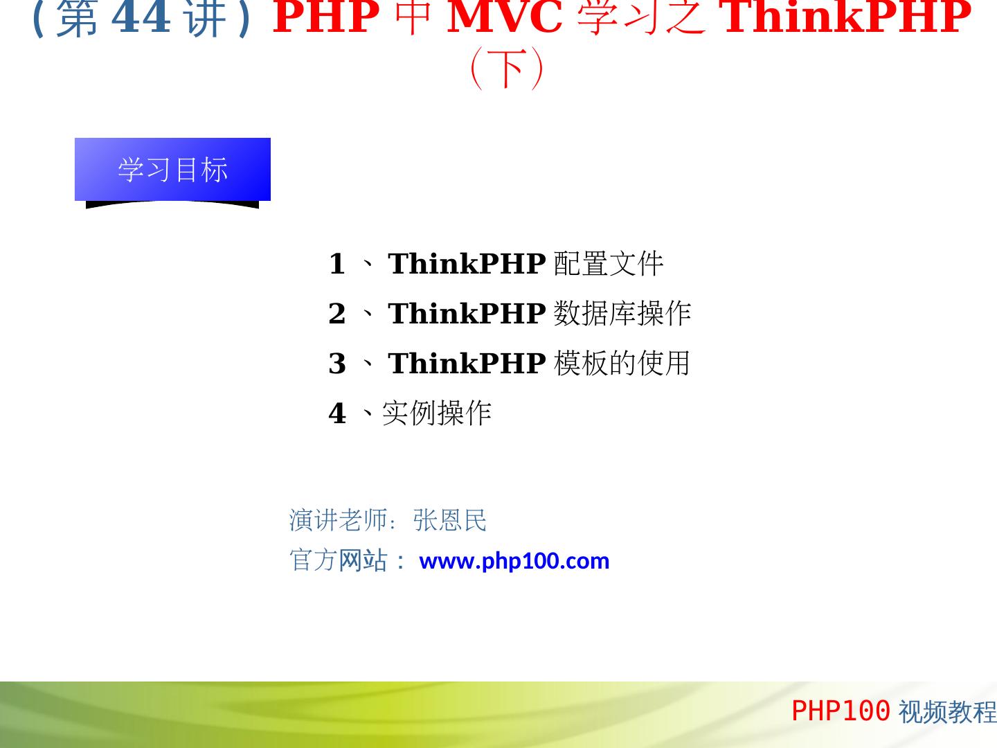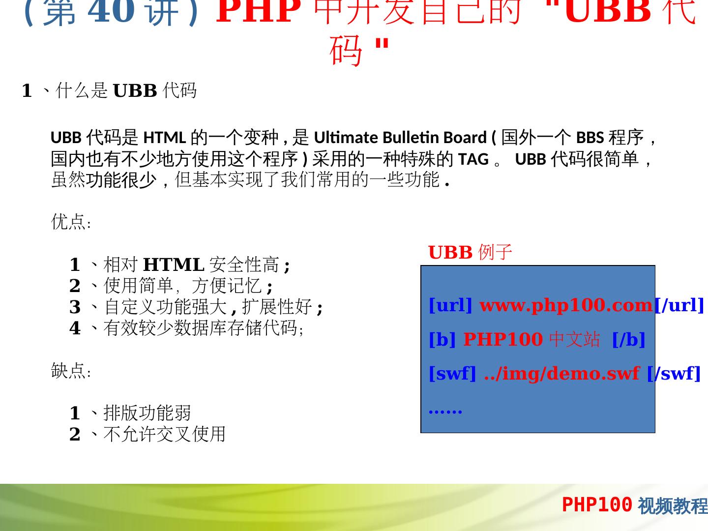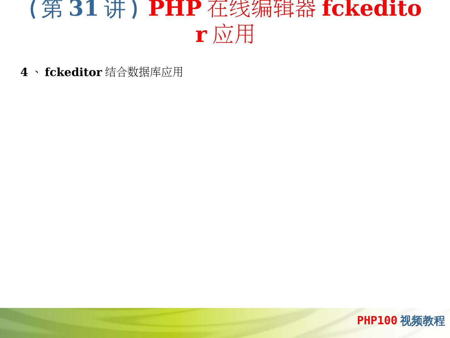 20 .( 第三讲 ) 常用 PHP 运算类型介绍与应用 感谢收看本次教程! 还有什么疑问可以到 www.php100.com 提出 也可以以发送邮件到 haowubai@hotmail.com ( msn ) 本次演讲老师:张恩民 PHP100 视频教程