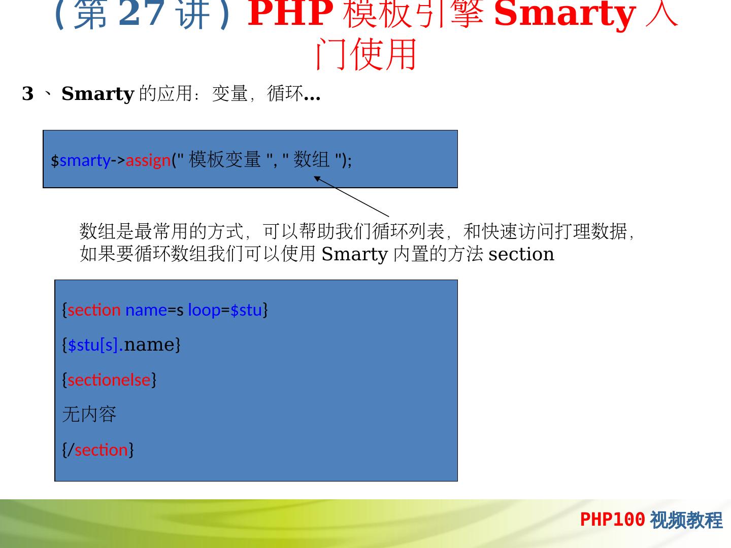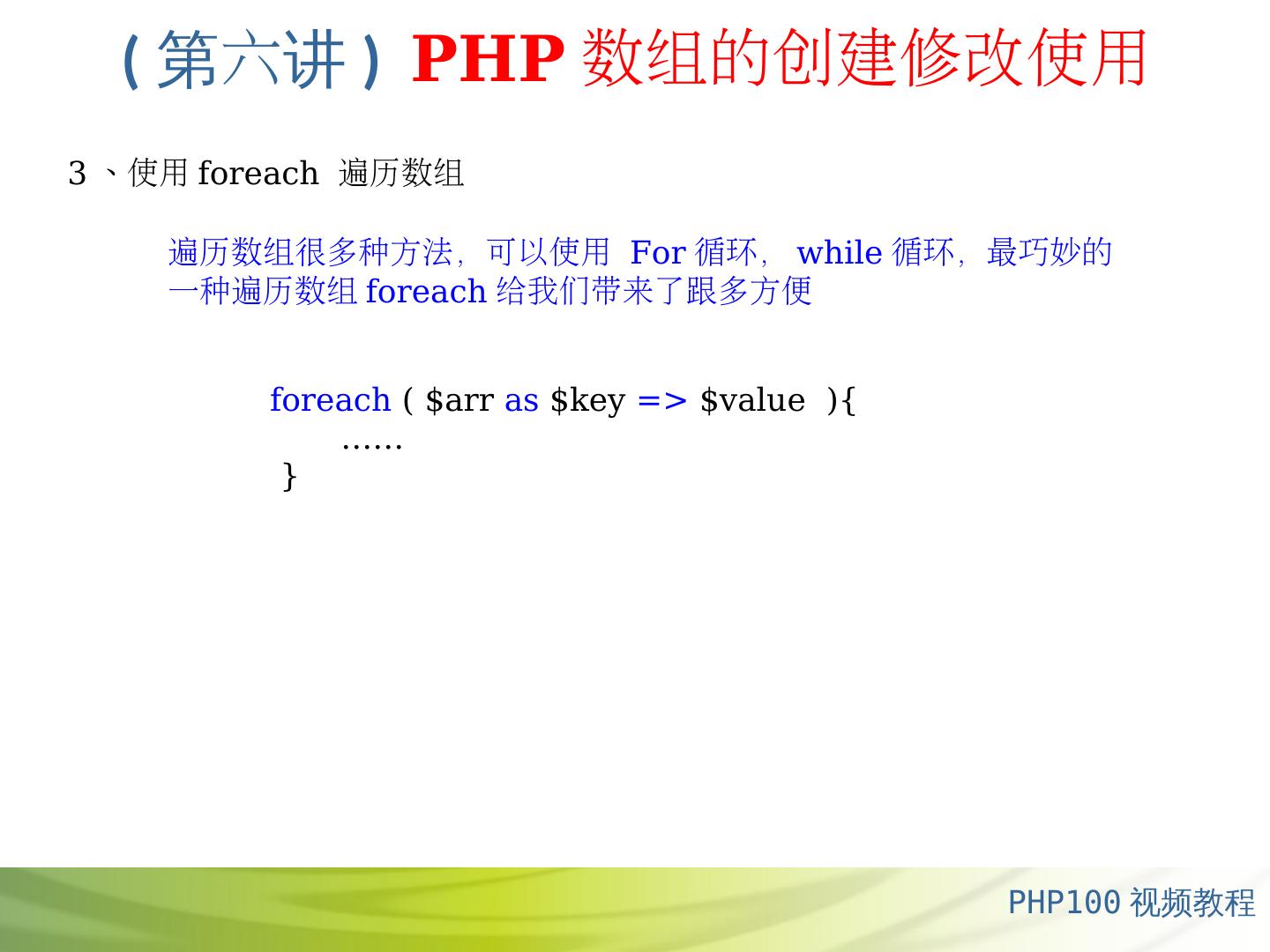 26 .( 第五讲 ) PHP 循环语句的介绍与应用 1 、 break n 循环控制语句 也可以理解为循环中断语句,跳出循环语句 break ;”来分隔语句。那些从 跳出一层循环 break n ;”来分隔语句。那些从 跳出 N 条循环 PHP100 视频教程