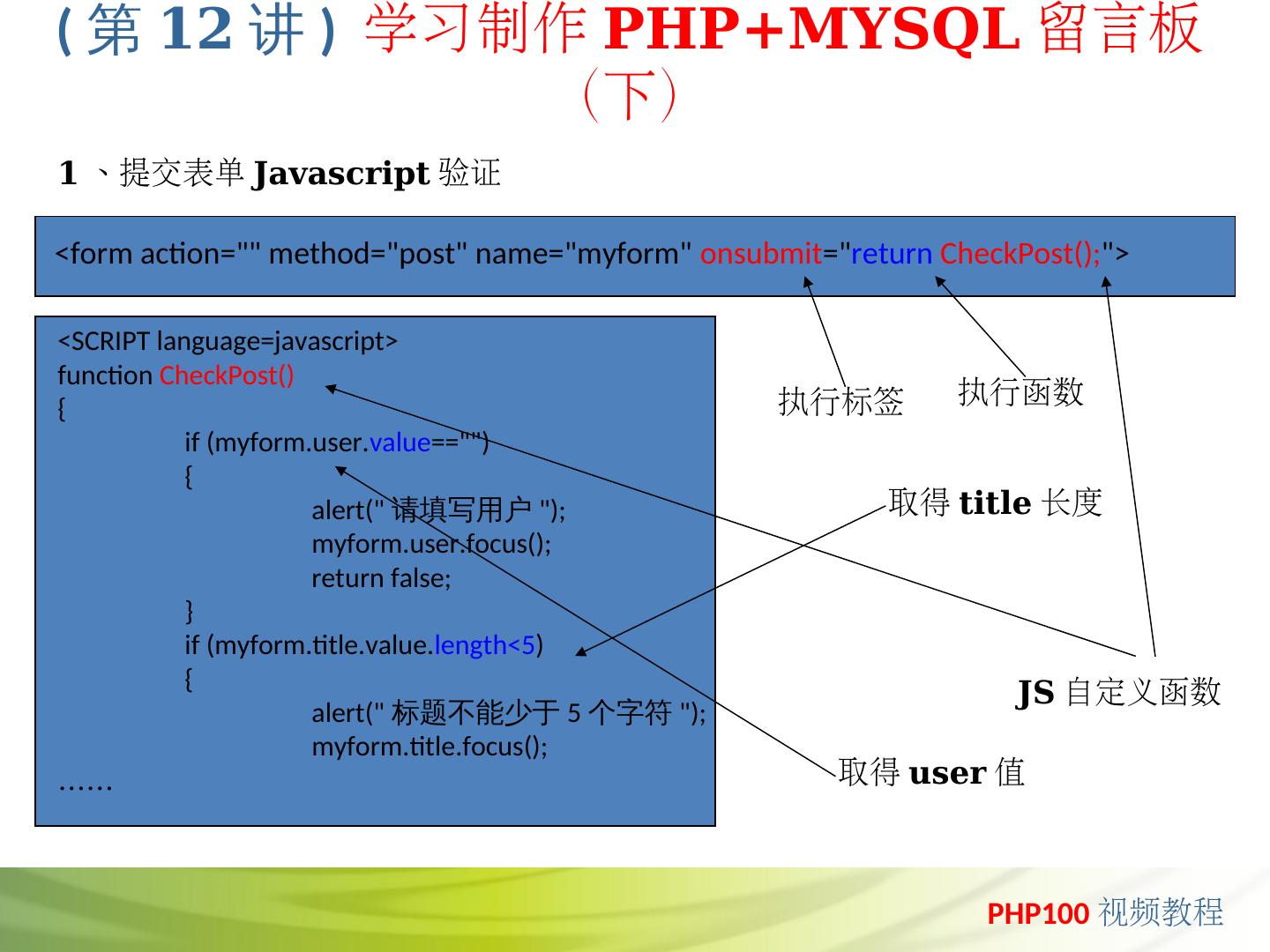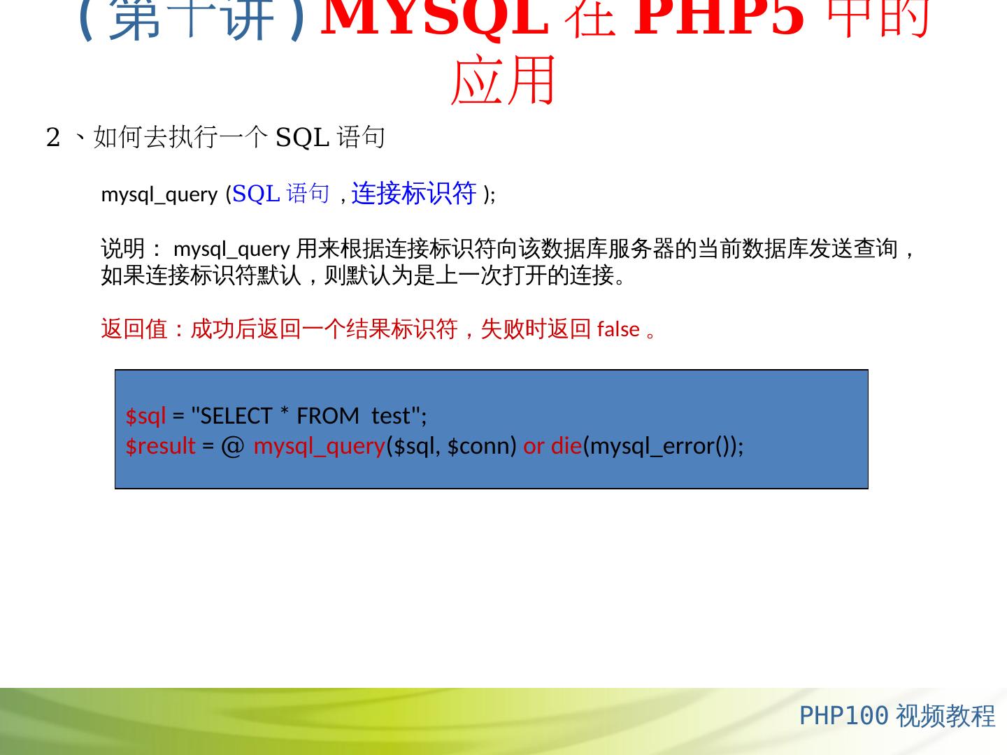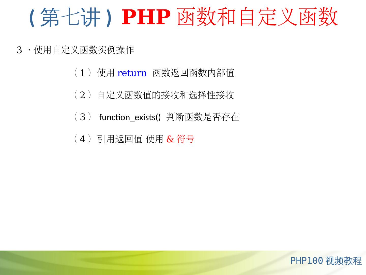 24 .( 第四讲 ) PHP 条件语句的介绍与应用 感谢收看本次教程! 还有什么疑问可以到 www.php100.com 提出 也可以以发送邮件到 haowubai@hotmail.com ( msn ) 本次演讲老师: 张恩民 QQ 群号: 1352110 PHP100 视频教程