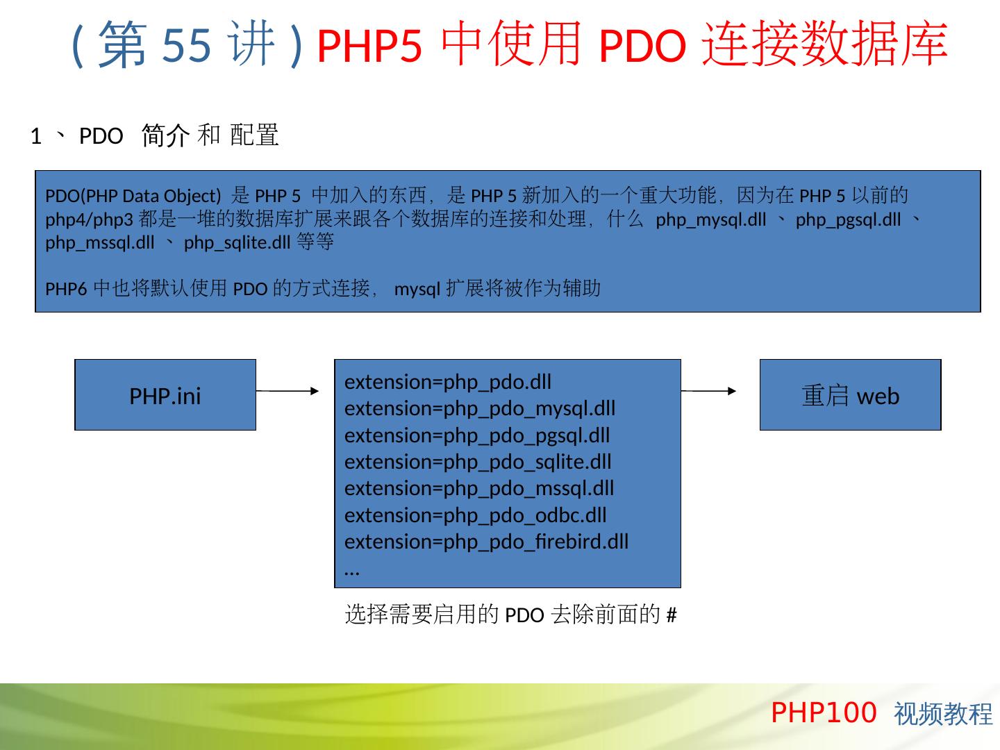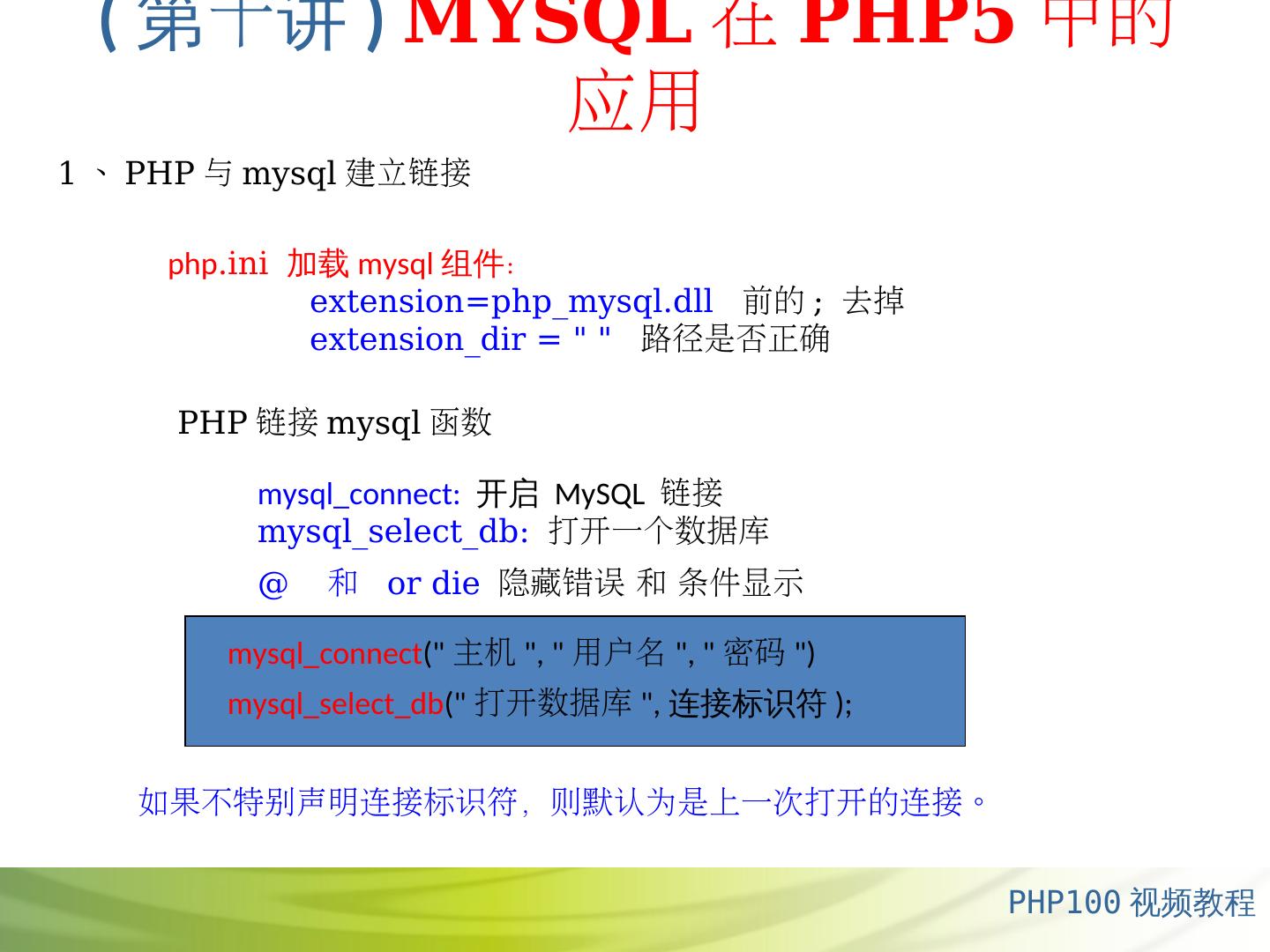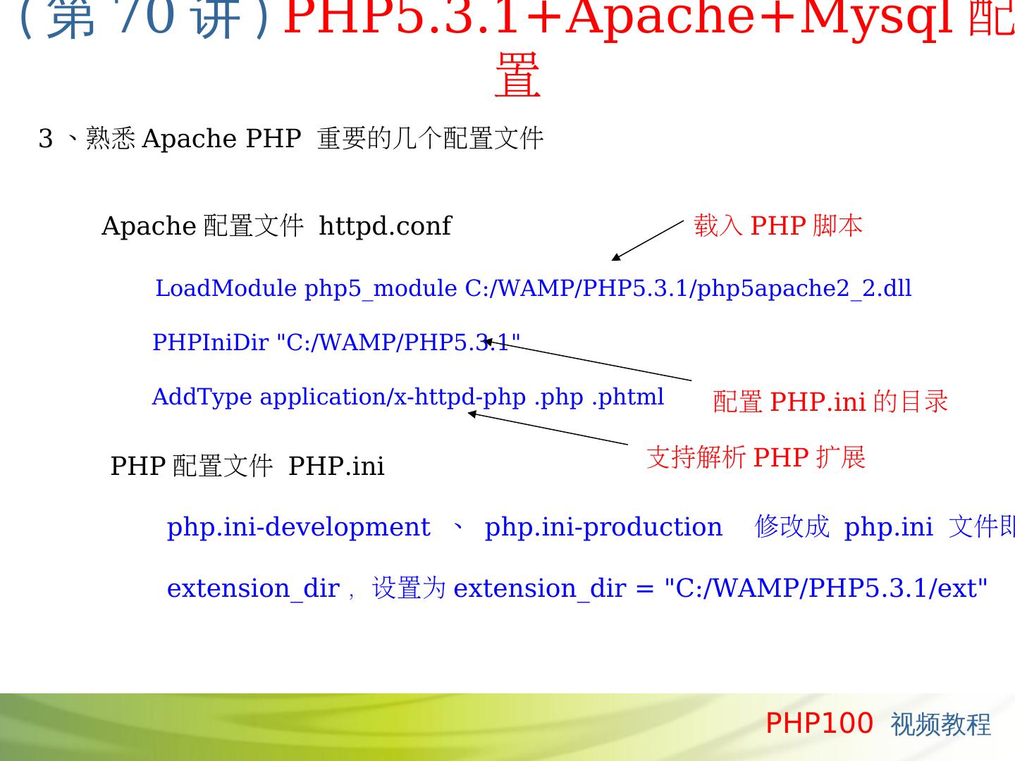 7 . ( 第一讲 ) PHP 环境搭配和代码调试 4 、如何处理简单的 PHP 错误 1 、你要把 PHP.ini 里的 display_errors = = = On 才可以显示错误位置 2 、习惯使用 echo 或者 print 打印 3 、学会使用注释来屏蔽符号来调试 /script> /script> ………. /script> *………… */script> #.............. 4 、要懂得看错误信息(英文不熟悉阿拉伯数字总认识吧) PHP100 视频教程
