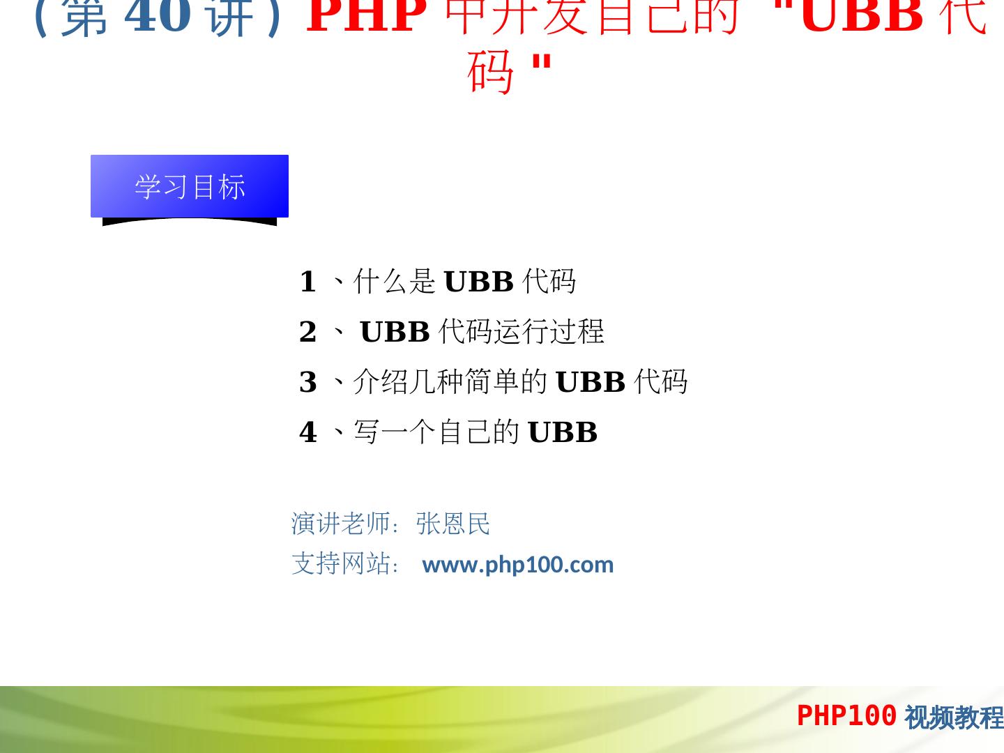 9 .( 第二讲 ) PHP 的数据类型 源码调试 本讲大纲: 1 、 PHP 基本语法和数据类型 2 、学习一个 PHP 源码调试 (discuzdiscuz 论坛 ) 演讲老师:张恩民 支持网站: www.php100.com PHP100 视频教程