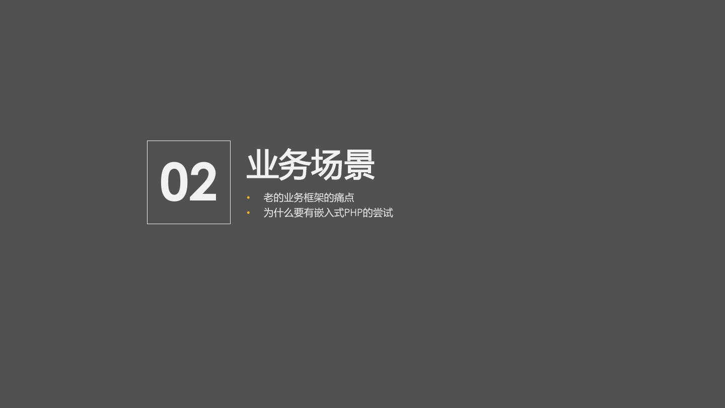 9 . 业务场景 02 • • 老的业务框架的痛点 为什么要有嵌入式PHP的尝试