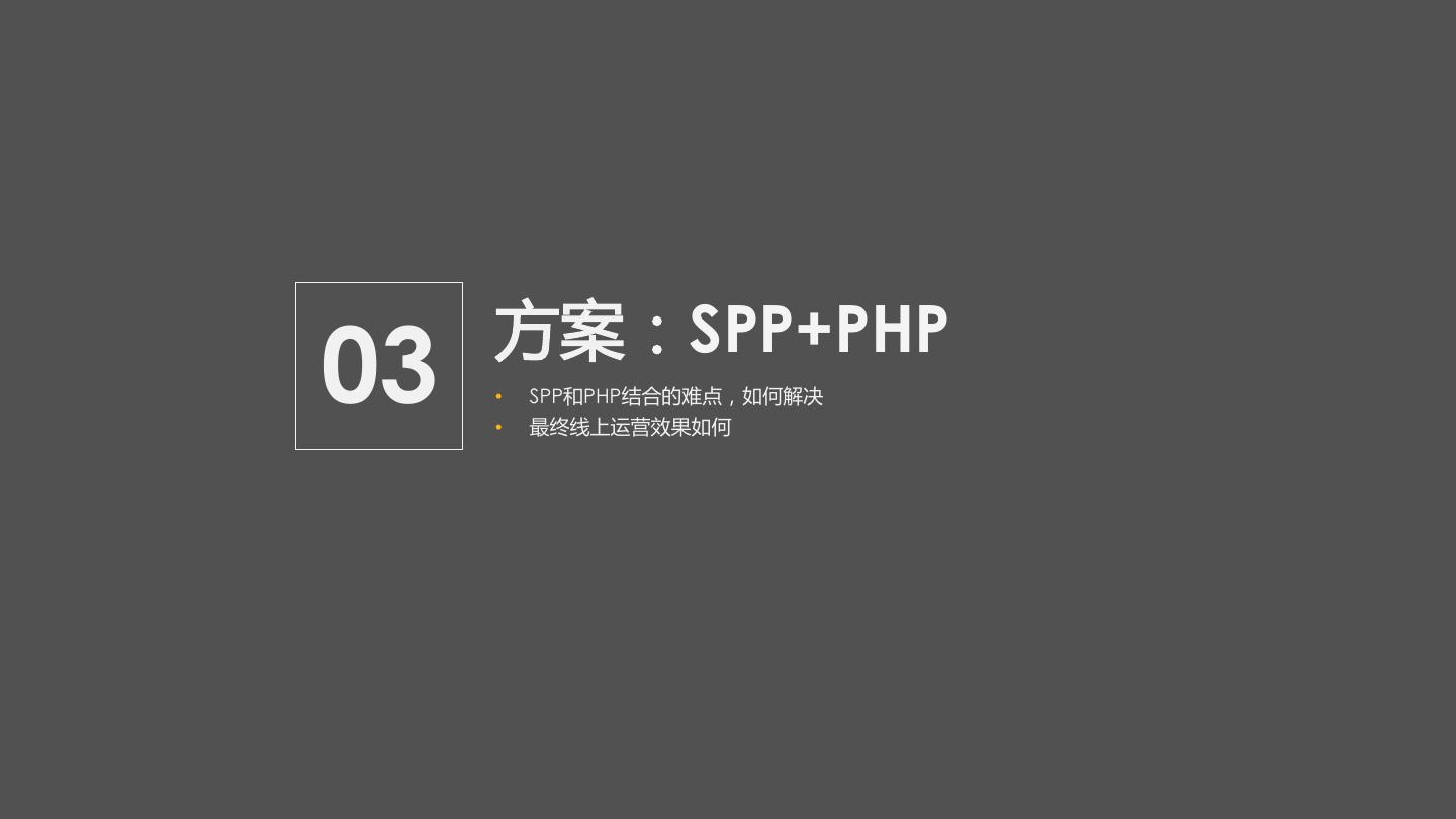 12 . 方案:SPP+PHP 03 • • SPP和PHP结合的难点,如何解决 最终线上运营效果如何