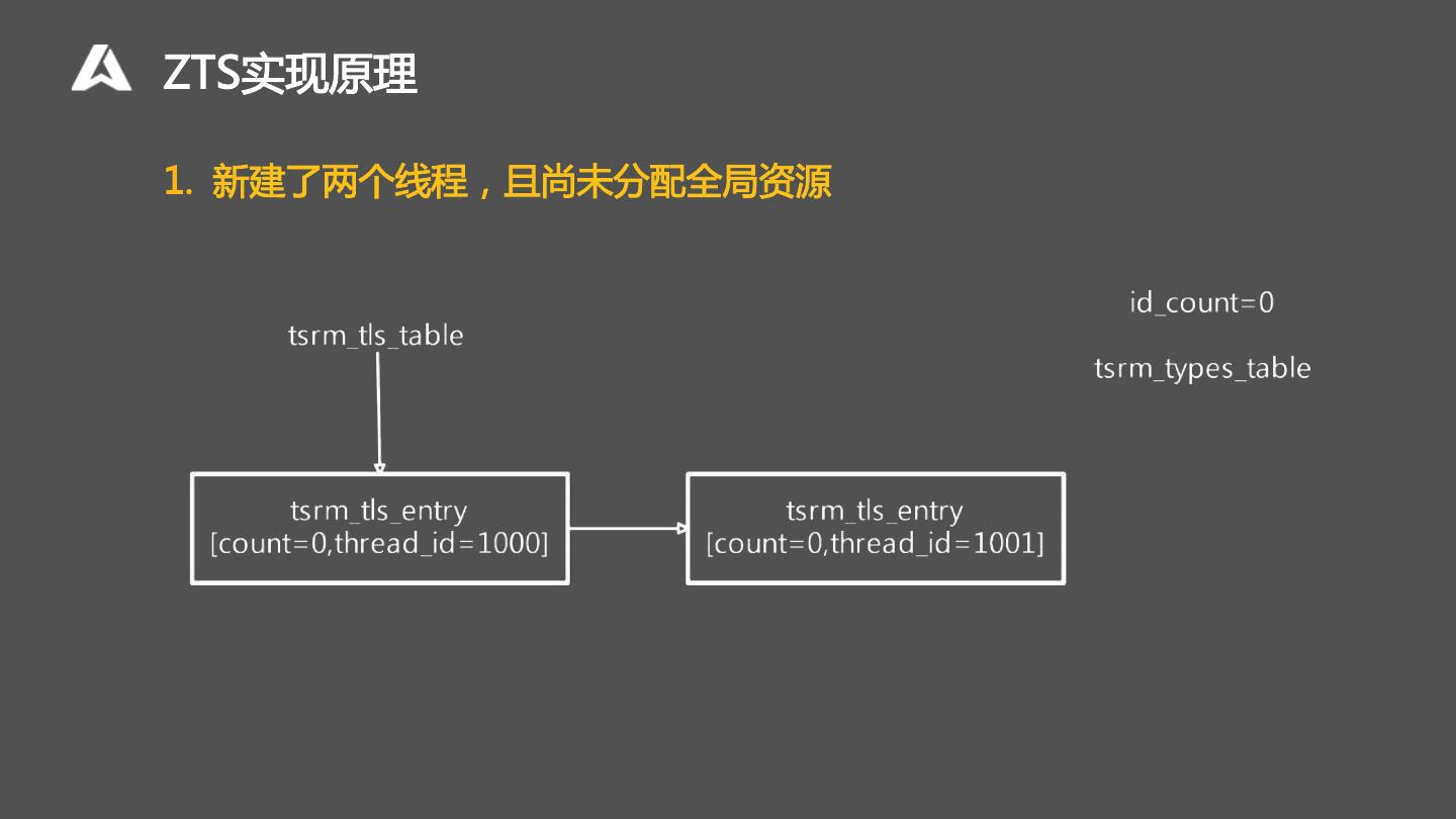 16 .ZTS实现原理 1. 新建了两个线程,且尚未分配全局资源