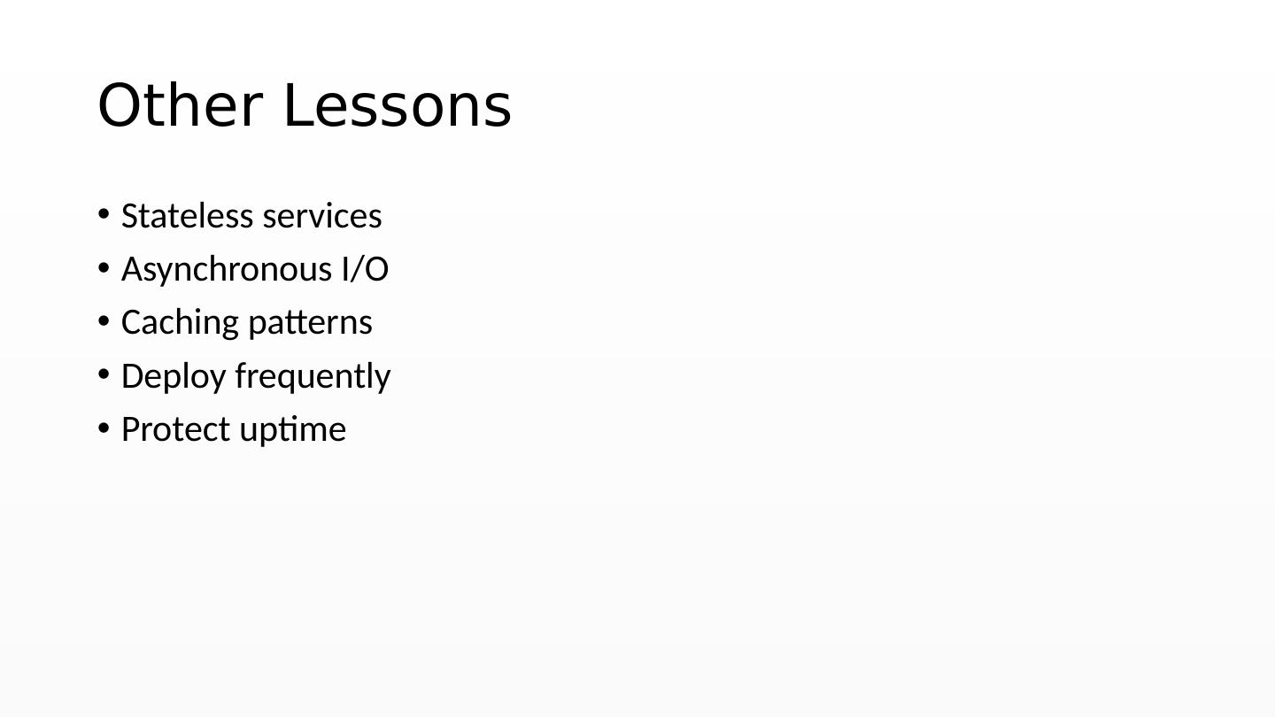 12 .Other Lessons Stateless services Asynchronous I/O Caching patterns Deploy frequently Protect uptime