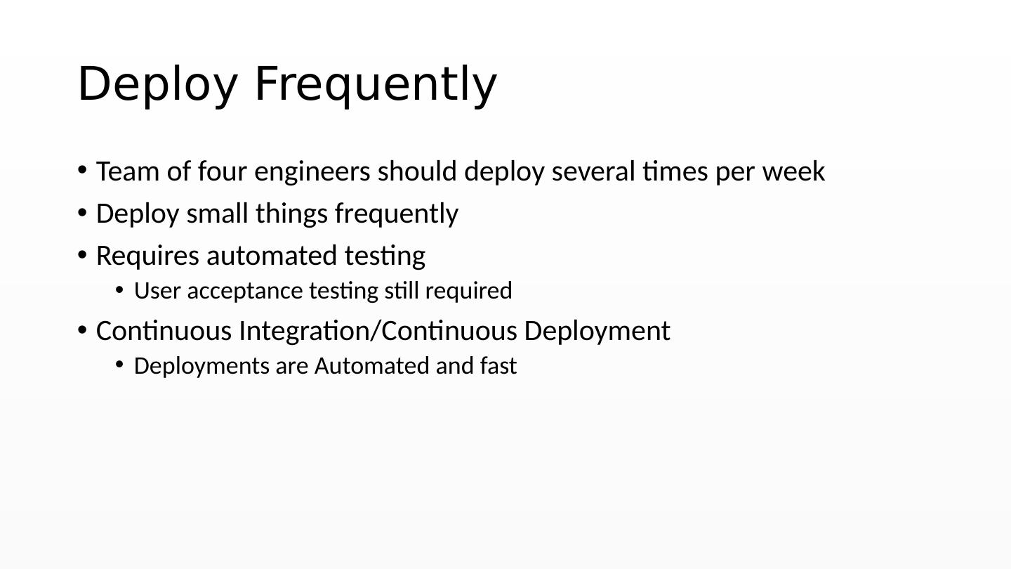 20 .Deploy Frequently Team of four engineers should deploy several times per week Deploy small things frequently Requires automated testing User acceptance testing still required Continuous Integration/Continuous Deployment Deployments are Automated and fast