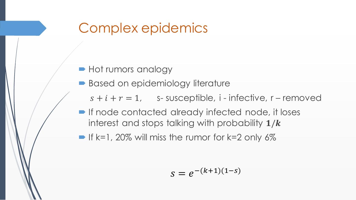 15 .Why epidemic? Why gossip? Highly available Fault-tolerant Overhead is tunable Fast Scalable Epidemic spreads eventually to everyone