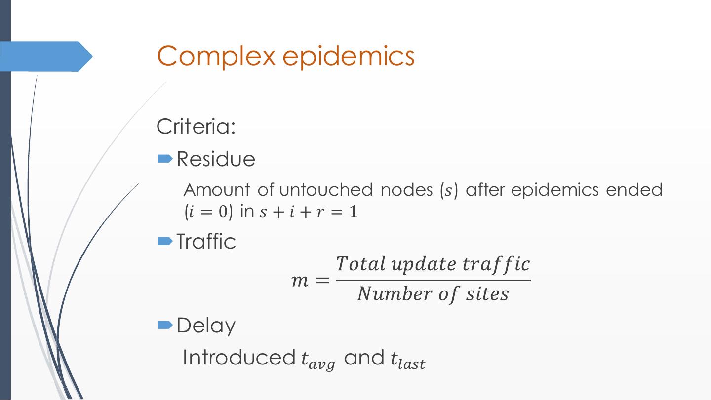 16 .Types of nodes infective – node that holds an update it is willing to share susceptible – node that has not yet received an update removed – node that has received an update but is no longer willing to share 𝑠+𝑖+𝑟 =1