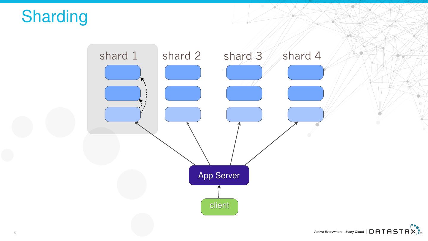 5 . Sharding shard 1 shard 2 shard 3 shard 4 App Server client 5