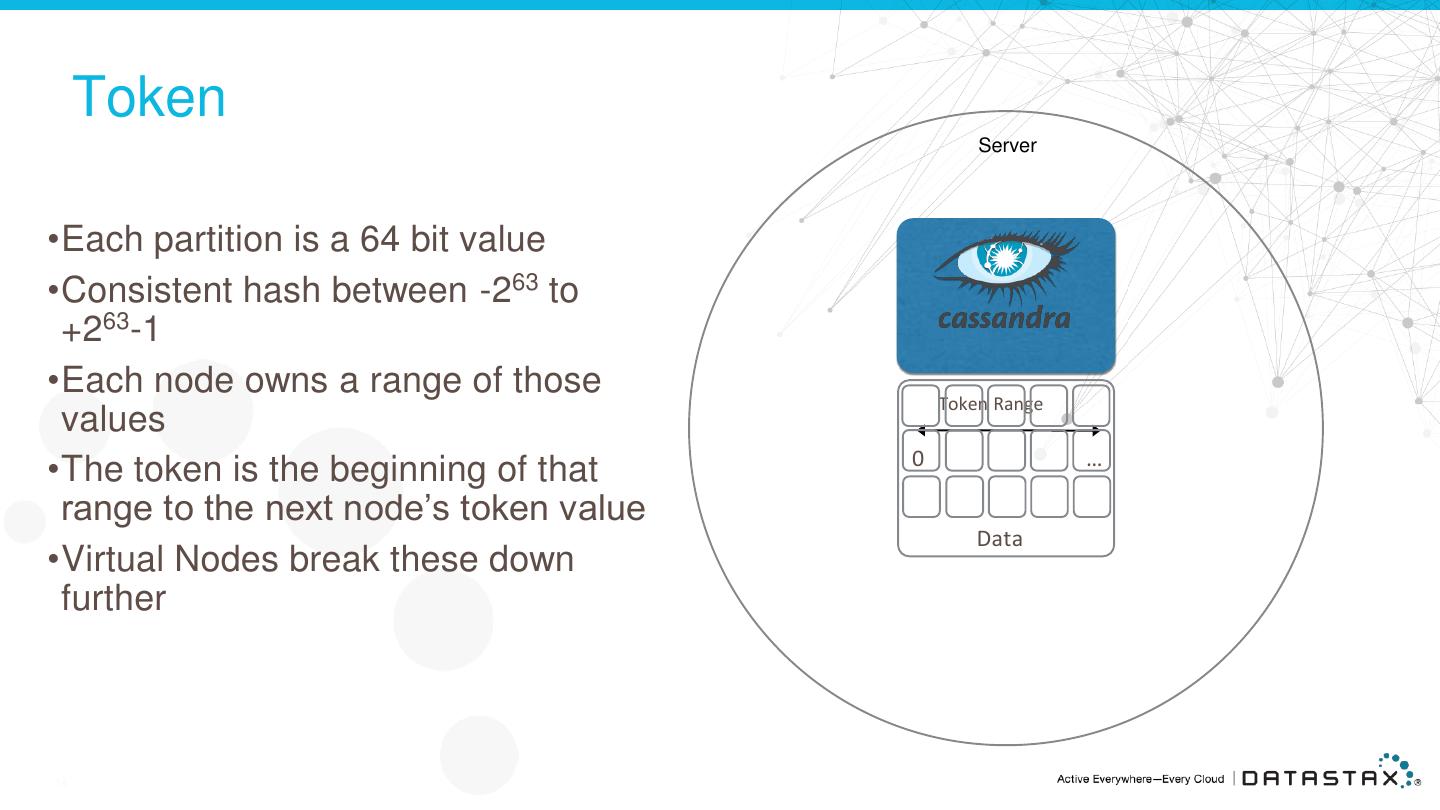 14 . Token Server •Each partition is a 64 bit value •Consistent hash between -263 to +263-1 •Each node owns a range of those Token Range values 0 … •The token is the beginning of that range to the next node’s token value Data •Virtual Nodes break these down further 14