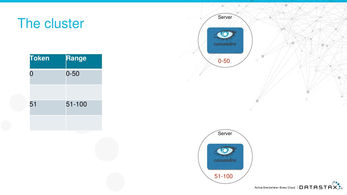 16 . Server The cluster Token Range 0-50 0 0-50 51 51-100 Server 51-100 16