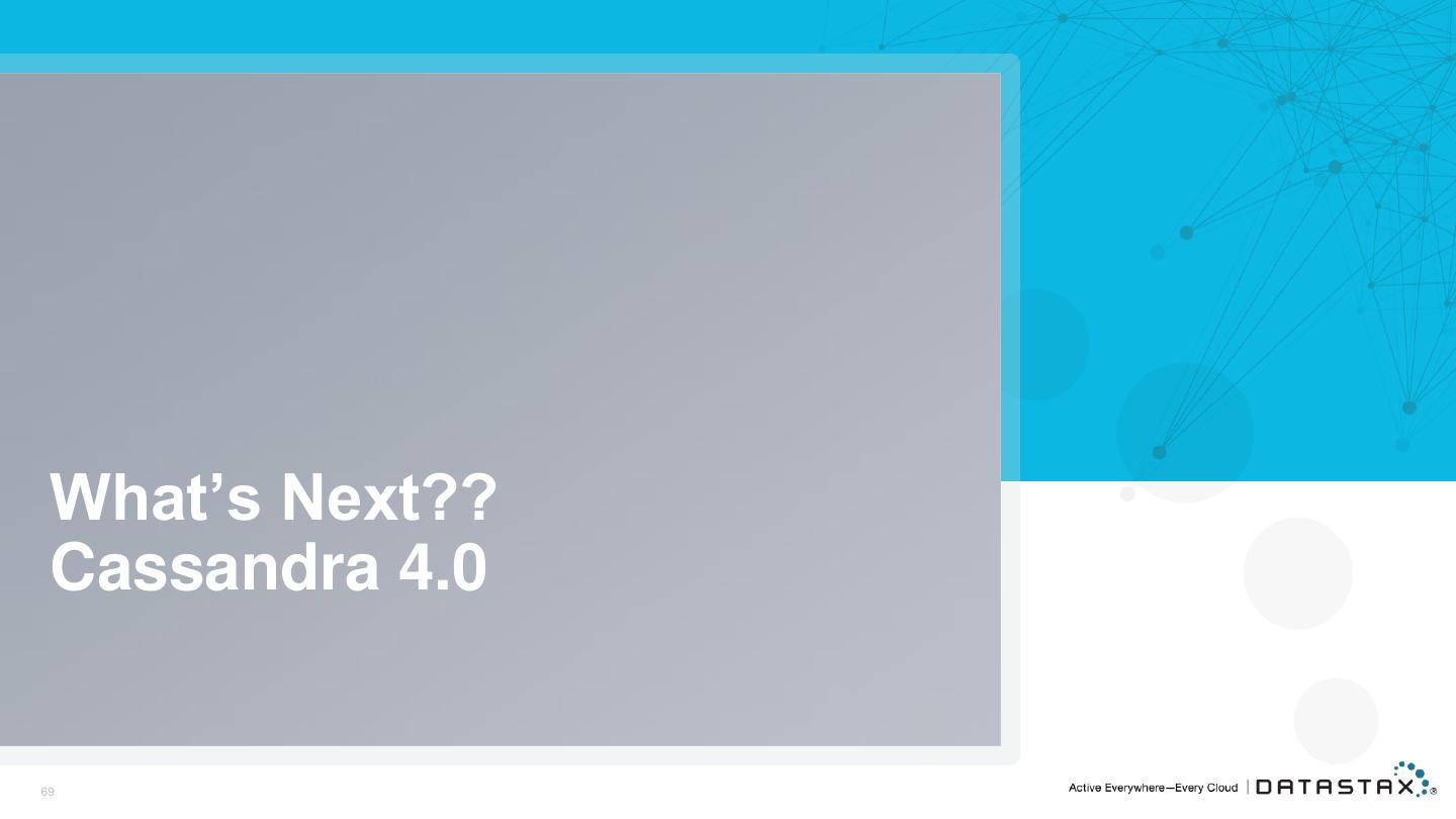27 . Multi-datacenter AWS GCP Client 10.0.0.1 10.1.0.1 00-25 00-25 76-100 76-100 51-75 51-75 Write to partition 15 10.0.0.4 10.0.0.2 10.1.0.4 10.1.0.2 76-100 26-50 76-100 26-50 51-75 00-25 51-75 00-25 26-50 76-100 26-50 76-100 10.0.0.3 10.1.0.3 51-75 51-75 26-50 26-50 00-25 00-25 DC1: RF=3 DC2: RF=3 27