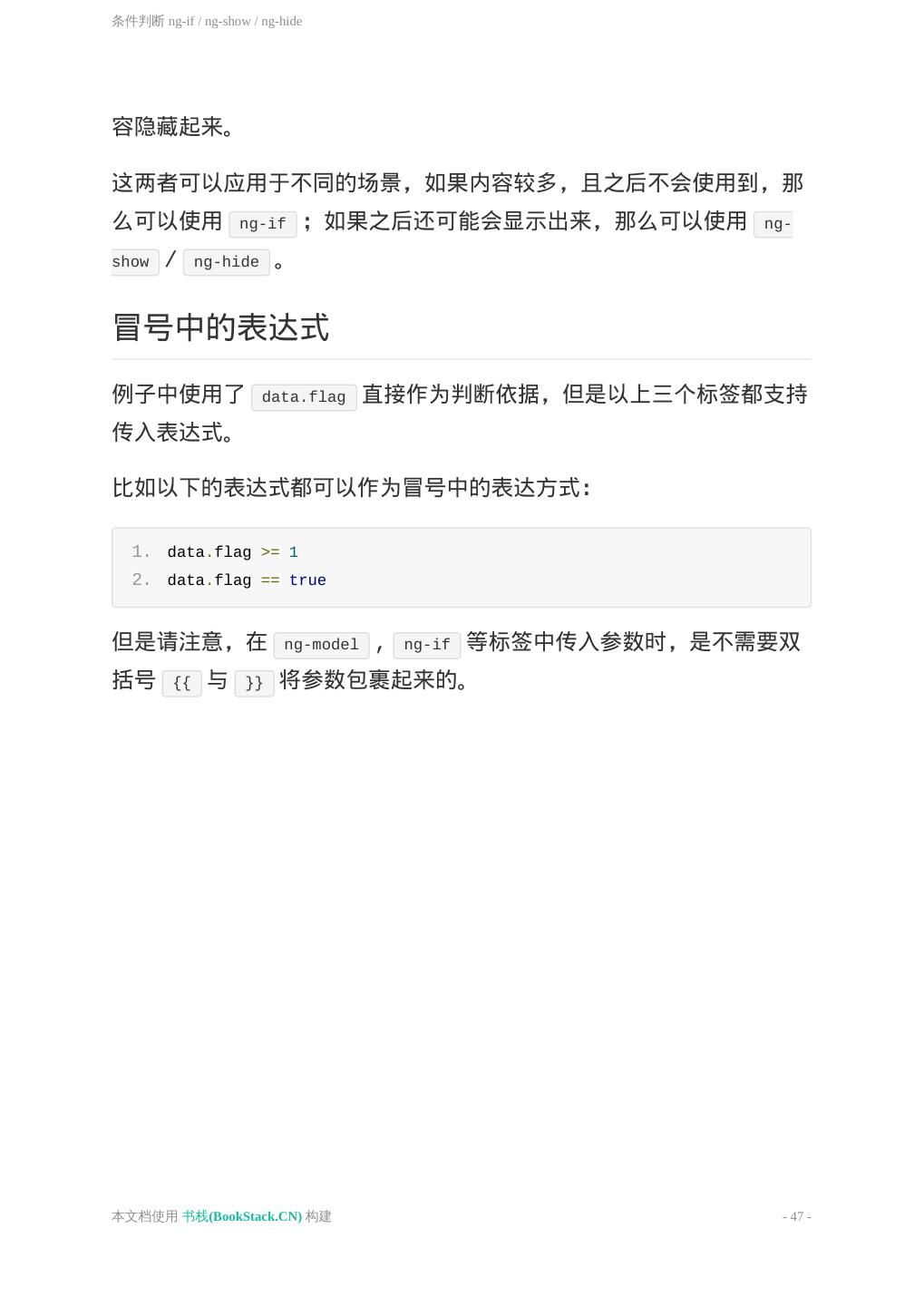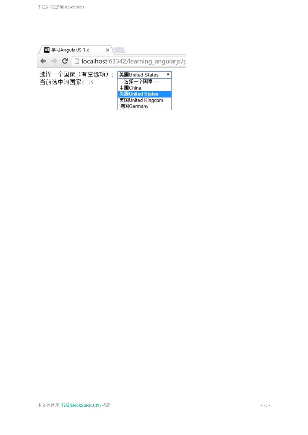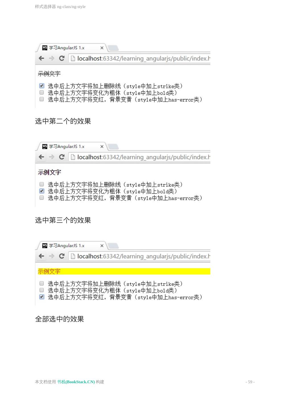 2 .致谢 致谢 当前文档 《学习AngularJS 1.x》 由 进击的皇虫 使用 书栈 (BookStack.CN) 进行构建,生成于 2018-04-18。 书栈(BookStack.CN) 仅提供文档编写、整理、归类等功能,以 及对文档内容的生成和导出工具。 文档内容由网友们编写和整理,书栈(BookStack.CN) 难以确认 文档内容知识点是否错漏。如果您在阅读文档获取知识的时候,发现文 档内容有不恰当的地方,请向我们反馈,让我们共同携手,将知识准 确、高效且有效地传递给每一个人。 同时,如果您在日常生活、工作和学习中遇到有价值有营养的知识 文档,欢迎分享到 书栈(BookStack.CN) ,为知识的传承献上您的 一份力量! 如果当前文档生成时间太久,请到 书栈(BookStack.CN) 获取 最新的文档,以跟上知识更新换代的步伐。 文档地 址:http://www.bookstack.cn/books/learning_angular 书栈官网:http://www.bookstack.cn 书栈开源:https://github.com/TruthHun 分享,让知识传承更久远! 感谢知识的创造者,感谢知识的分享 者,也感谢每一位阅读到此处的读者,因为我们都将成为知识的传承 者。 本文档使用 书栈(BookStack.CN) 构建 - 2 -