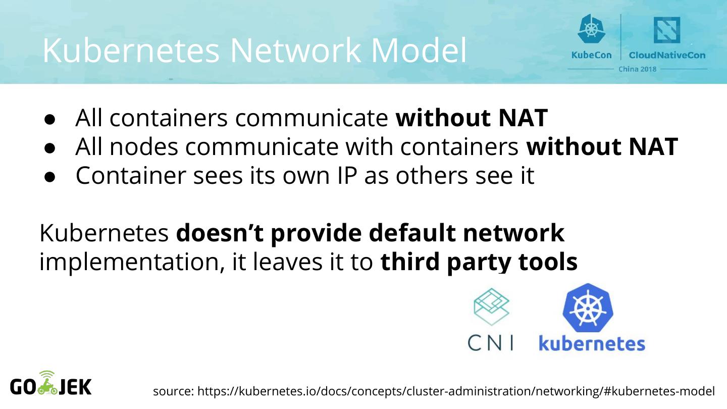 4 .Kubernetes Network Model ● All containers communicate without NAT ● All nodes communicate with containers without NAT ● Container sees its own IP as others see it Kubernetes doesn’t provide default network implementation, it leaves it to third party tools source: https://kubernetes.io/docs/concepts/cluster-administration/networking/#kubernetes-model