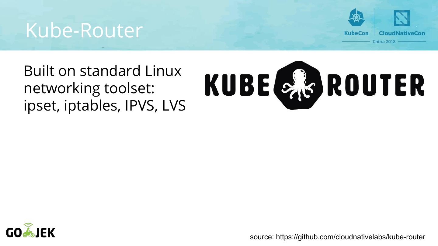 12 .Kube-Router Built on standard Linux networking toolset: ipset, iptables, IPVS, LVS source: https://github.com/cloudnativelabs/kube-router