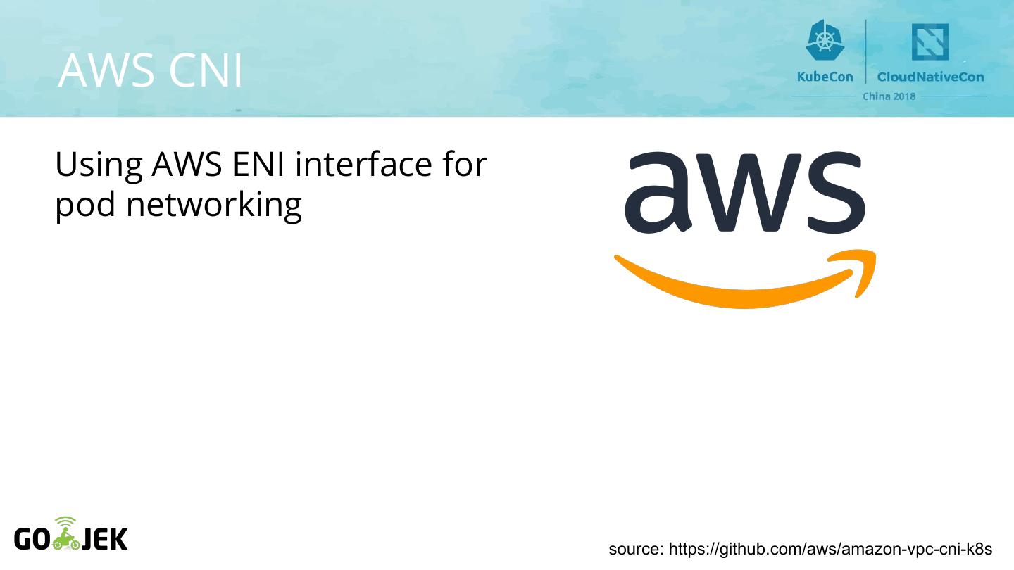 13 .AWS CNI Using AWS ENI interface for pod networking source: https://github.com/aws/amazon-vpc-cni-k8s