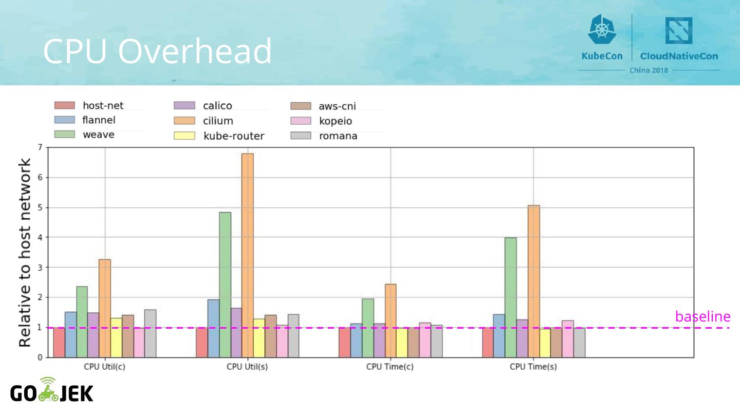 17 .Goals ● Lowest latency and highest throughput ● Different protocols and various packet sizes ● CPU consumption and launch time ● Kubernetes network policies