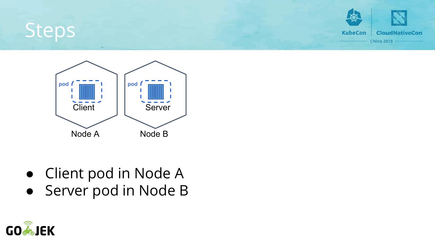 22 .Steps pod pod Sockperf (c) Sockperf (s) Node A Node B ● Sockperf client pod ● 256 bytes in Node A for TCP throughput test ● Sockperf server pod ● 16 bytes in Node B for TCP latency test