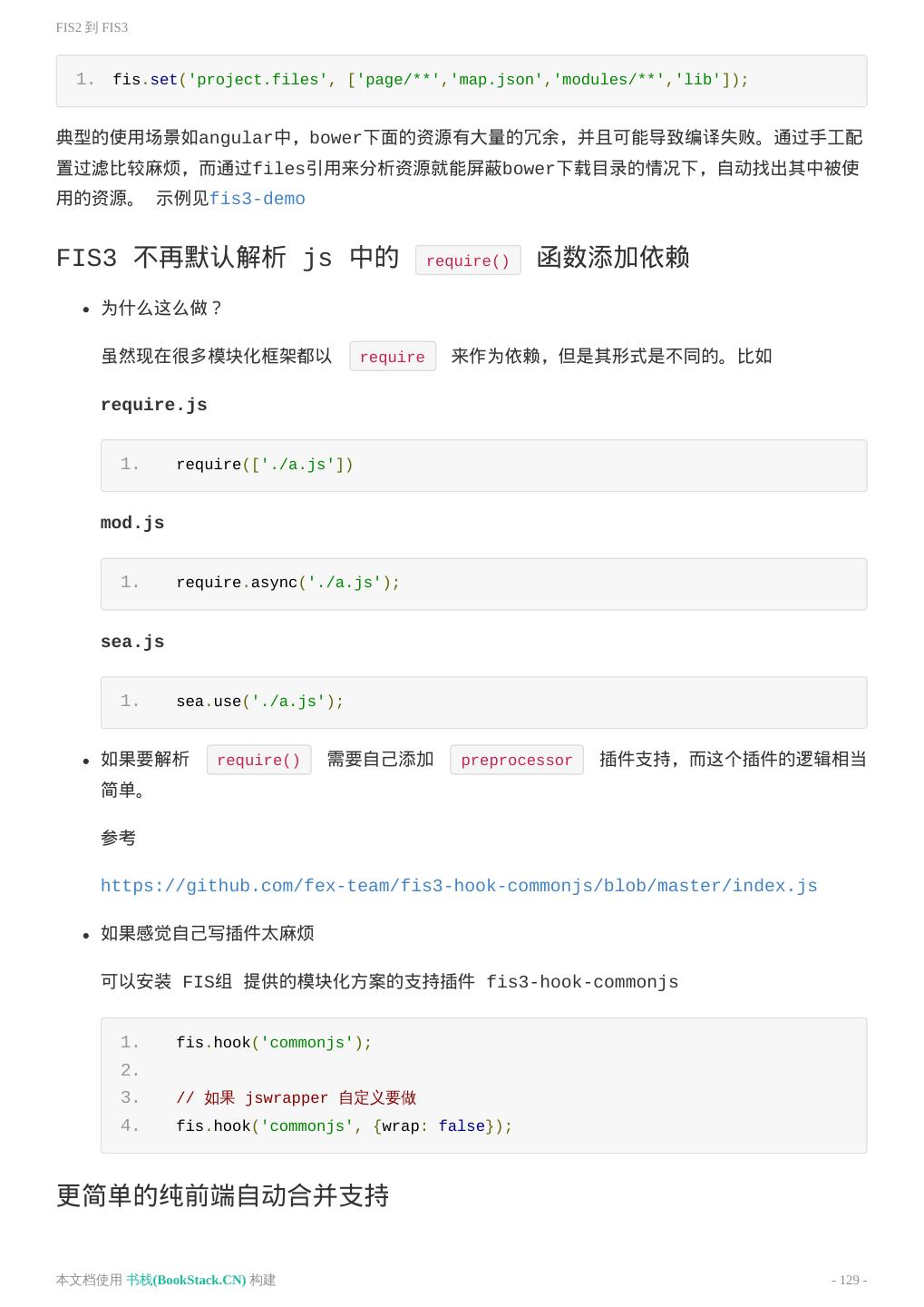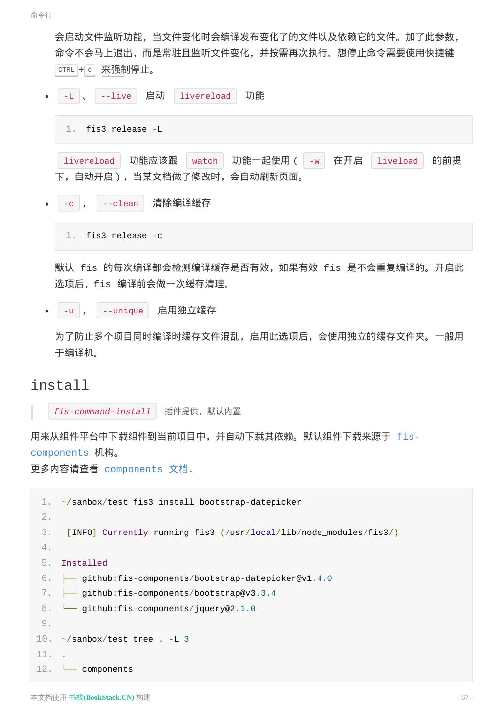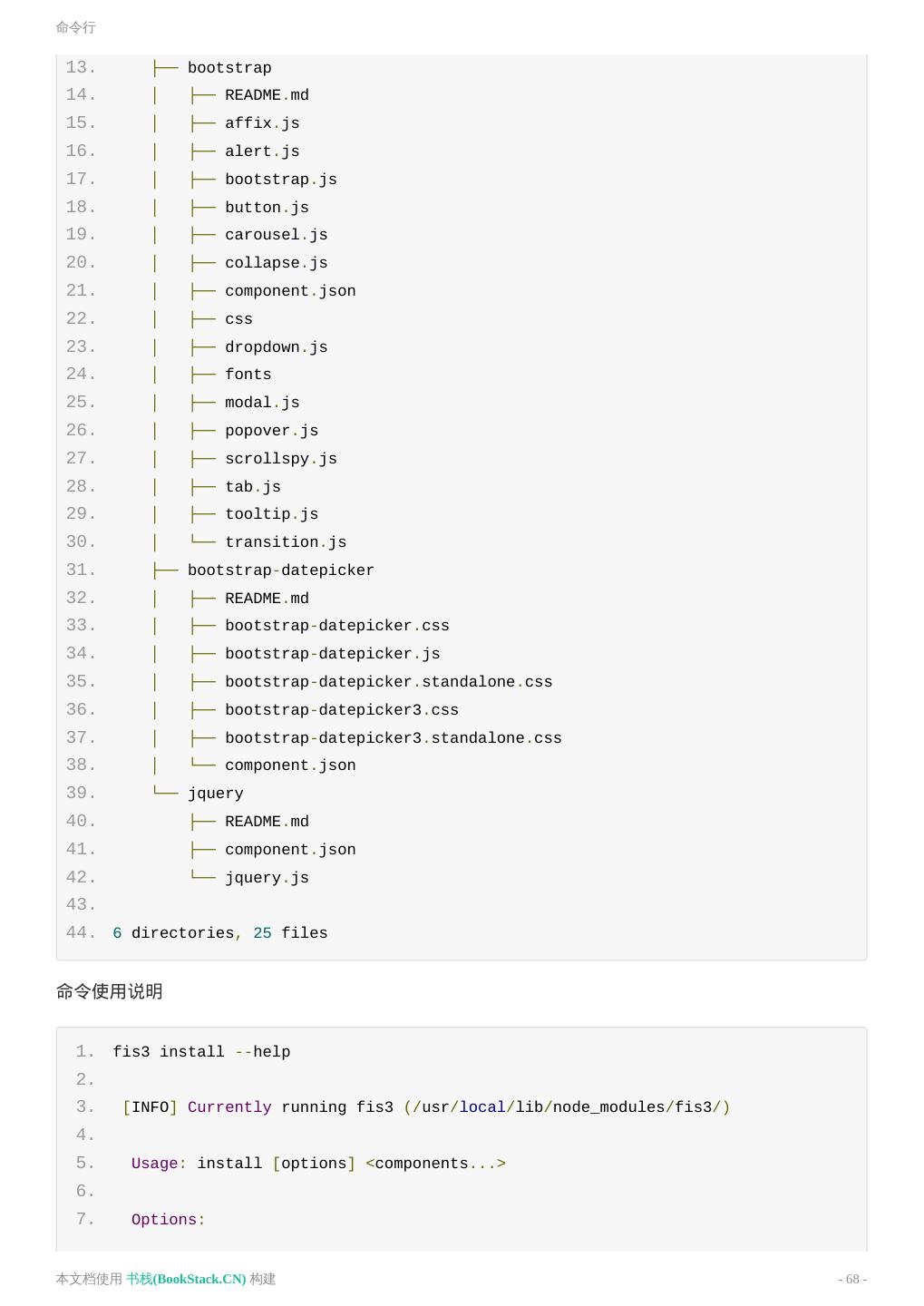 2 . 目 录 致谢 README 介绍 安装 起步 构建 调试 内置语法 内容嵌入 定位资源 声明依赖 请转移到 Release 页面 工作原理 初级使用 中级使用 高级使用 接口文档 命令行 配置 配置接口 配置属性 常用配置 glob 内置插件及配置 自定义插件 从零开始 代码校验 FIS2 到 FIS3 资源合并 mock 假数据模拟 常用的插件列表 fis3 site base-css fis3/lib/fis.js 本文档使用 书栈(BookStack.CN) 构建 - 2 -