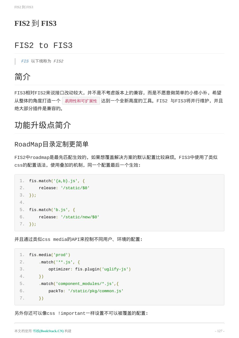7 .介绍 介绍 FIS3 FIS3 是什么? FIS3 是面向前端的工程构建工具。解决前端工程中性能优化、资源加载(异步、同步、按需、预加 载、依赖管理、合并、内嵌)、模块化开发、自动化工具、开发规范、代码部署等问题。 本文档使用 书栈(BookStack.CN) 构建 - 7 -