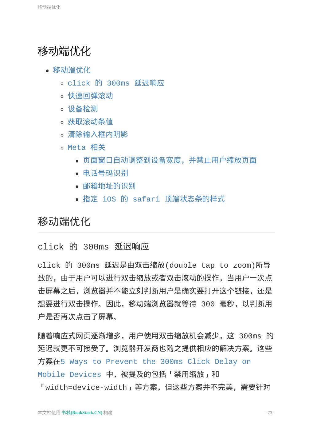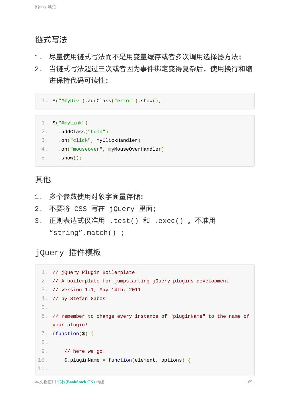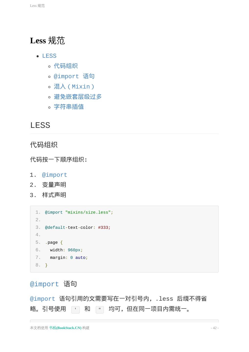 1 . 目 录 致谢 介紹 基本原则 HTML 通用约定 语义化 HEAD CSS 通用约定 字体排印 模块组织 Less 规范 性能优化 JavaScript 通用约定 jQuery 规范 性能优化 移动端优化 工具箱 参考 本文档使用 书栈(BookStack.CN) 构建 - 1 -