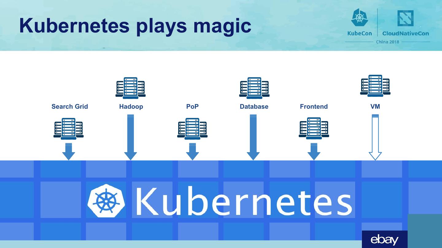 8 .Kubernetes plays magic Search Grid Hadoop PoP Database Frontend VM