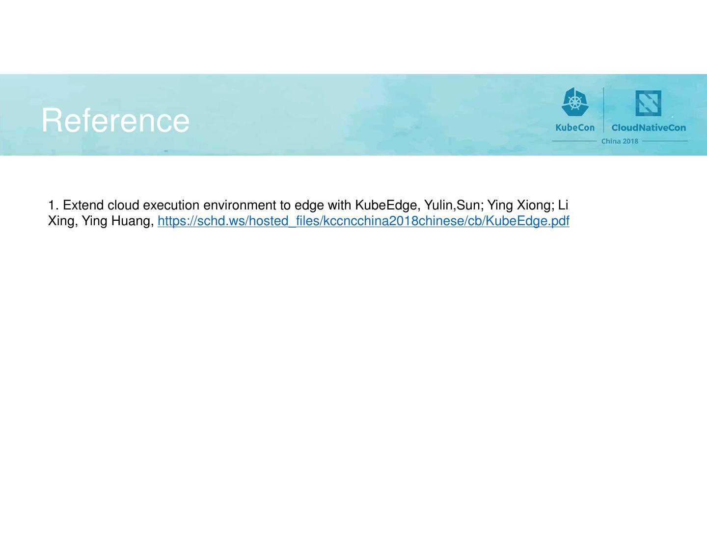 10 .Reference 1. Extend cloud execution environment to edge with KubeEdge, Yulin,Sun; Ying Xiong; Li Xing, Ying Huang, https://schd.ws/hosted_files/kccncchina2018chinese/cb/KubeEdge.pdf