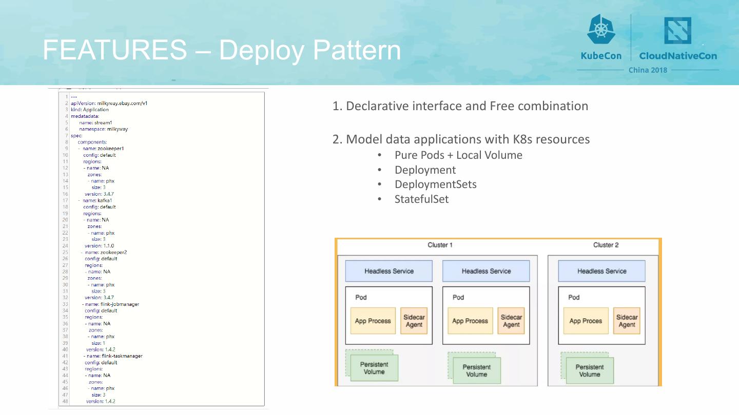 10 .FEATURES – Deploy Pattern 1. Declarative interface and Free combination 2. Model data applications with K8s resources • Pure Pods + Local Volume • Deployment • DeploymentSets • StatefulSet