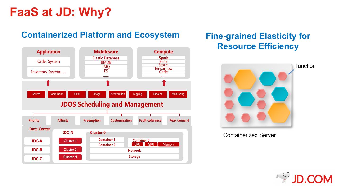 9 .FaaS at JD: Why? Containerized Platform and Ecosystem Fine-grained Elasticity for - Resource Efficiency function BB BB BB -2 1 1 00 - Containerized Server 1