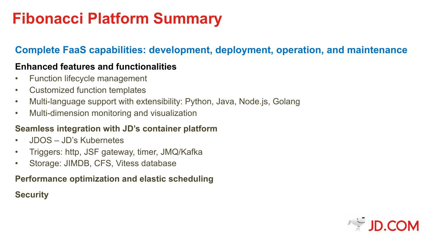 1 .Fibonacci: JD’s Function as a Service Platform Yuan Chen, Xin Tong, Hui Tu, Dongdong Dai, Junyuan Zeng, Fuze Sun JD.com