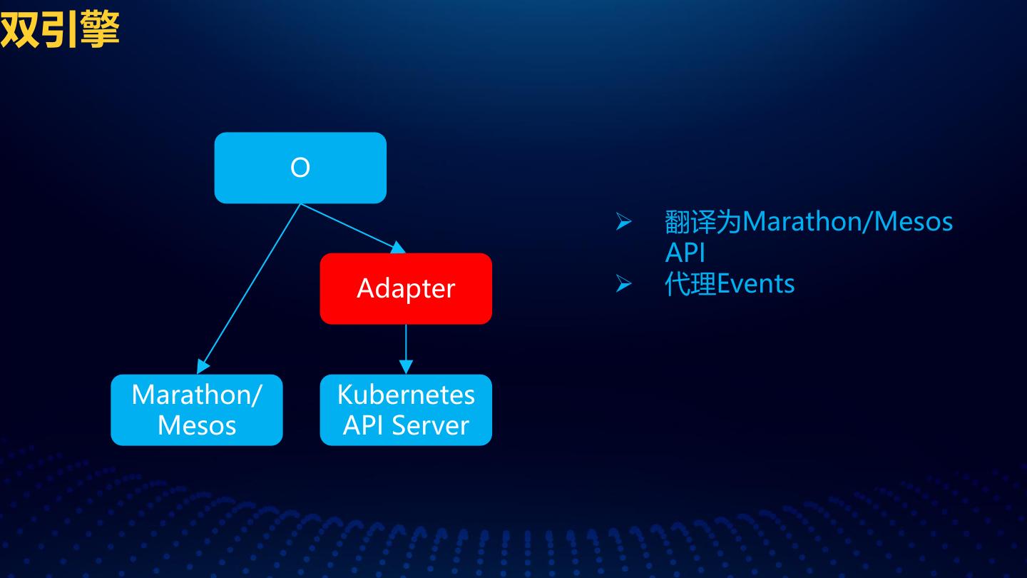 17 .双引擎 O 翻译为Marathon/Mesos API Adapter 代理Events Marathon/ Kubernetes Mesos API Server