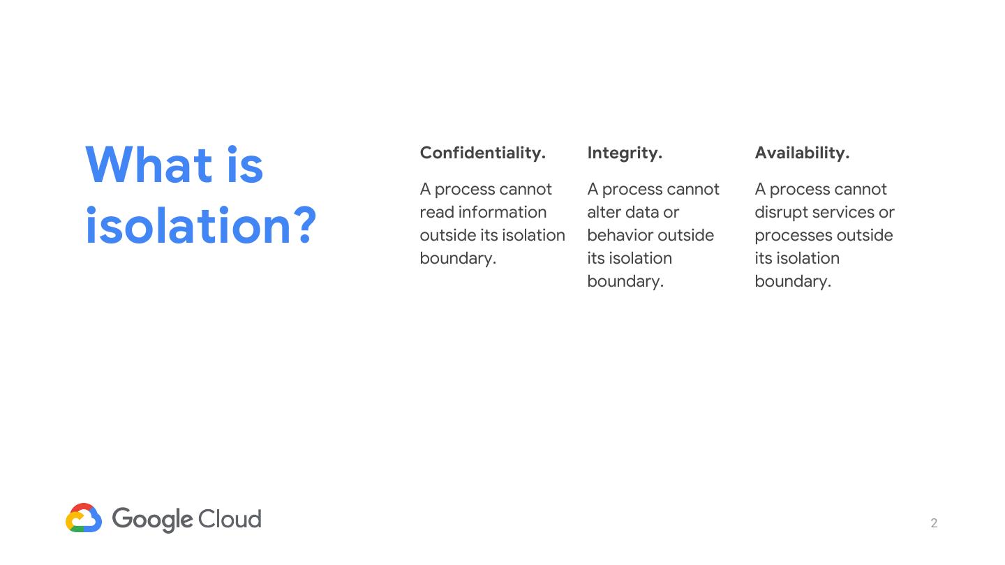 2 .What is Confidentiality. A process cannot Integrity. A process cannot Availability. A process cannot isolation? read information outside its isolation boundary. alter data or behavior outside its isolation disrupt services or processes outside its isolation boundary. boundary. 2