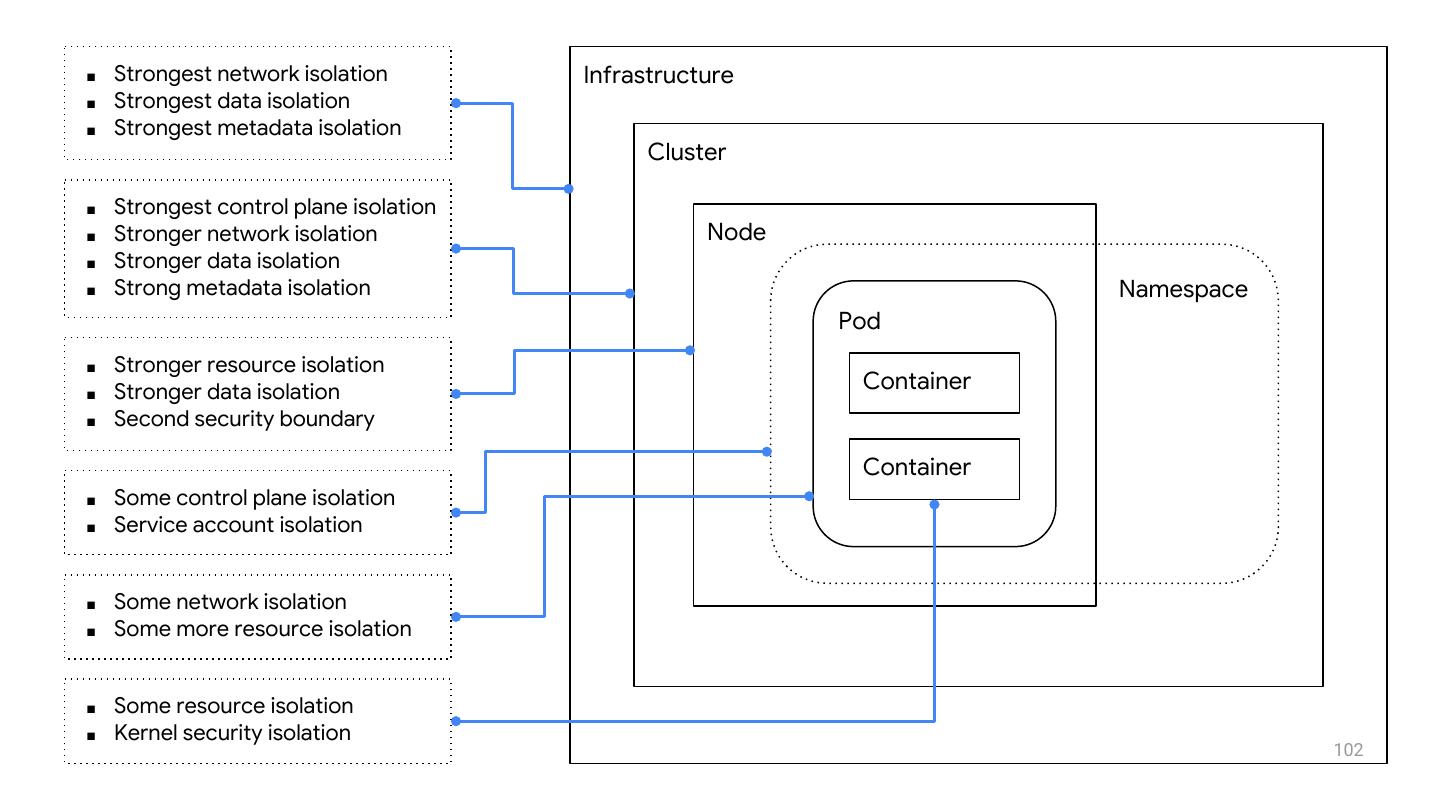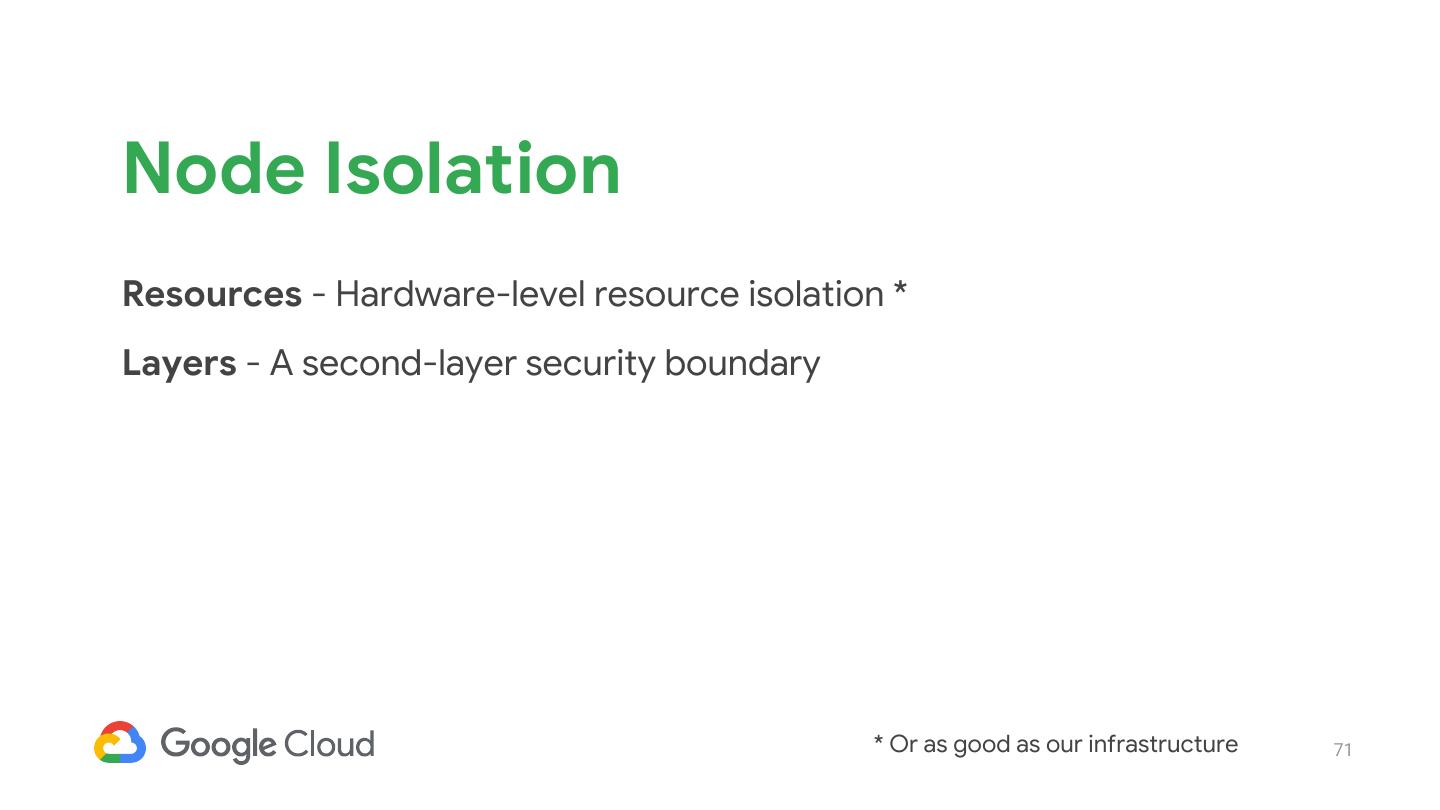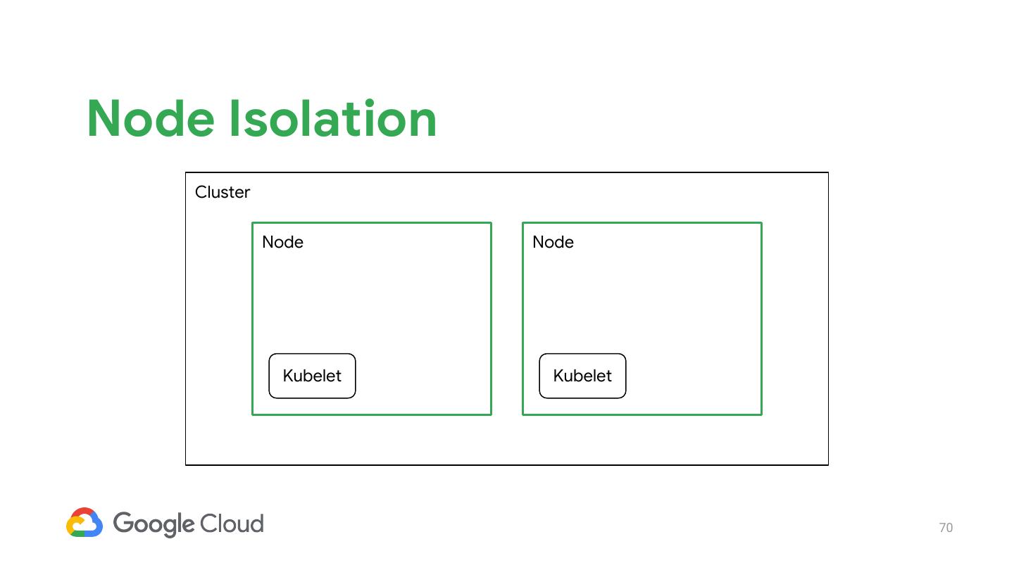 3 .Why is it Multi dimensional Resource isolation, data Directional Isolating the Kubelet from a difficult? isolation, and process isolation can be independent axes. container does not mean the container is isolated from the Kubelet. Security requires a holistic approach - attackers will find the weakest link. 3