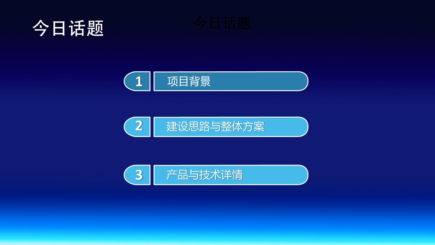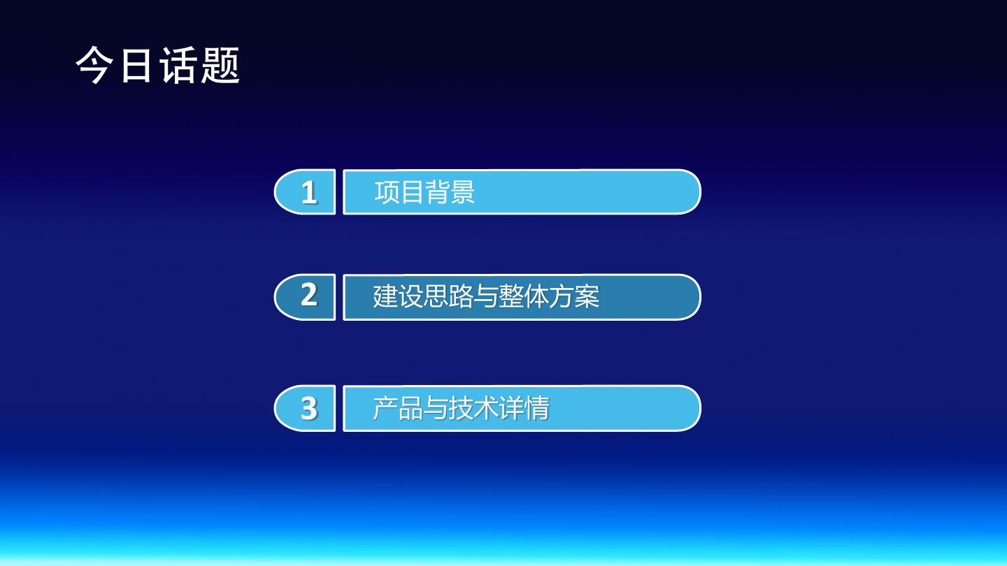 2 .今⽇话题 今日话题 1 项目背景 2 建设思路与整体方案 3 产品与技术详情