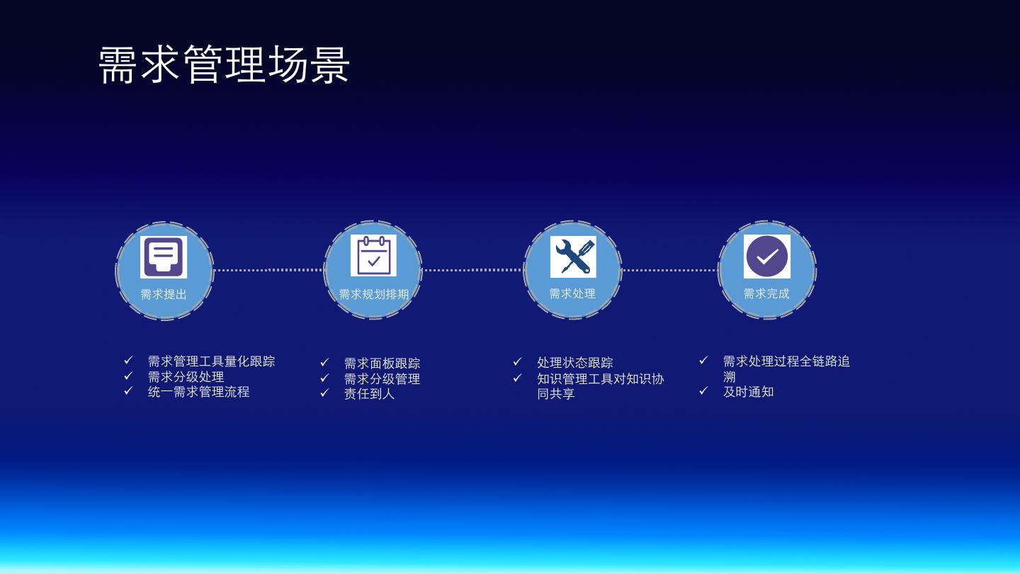 14 .需求管理场景 需求提出 需求规划排期 需求处理 需求完成 ü 需求管理⼯具量化跟踪 ü 需求⾯板跟踪 ü 处理状态跟踪 ü 需求处理过程全链路追 ü 需求分级处理 ü 需求分级管理 ü 知识管理⼯具对知识协 溯 ü 统⼀需求管理流程 ü 责任到⼈ 同共享 ü 及时通知