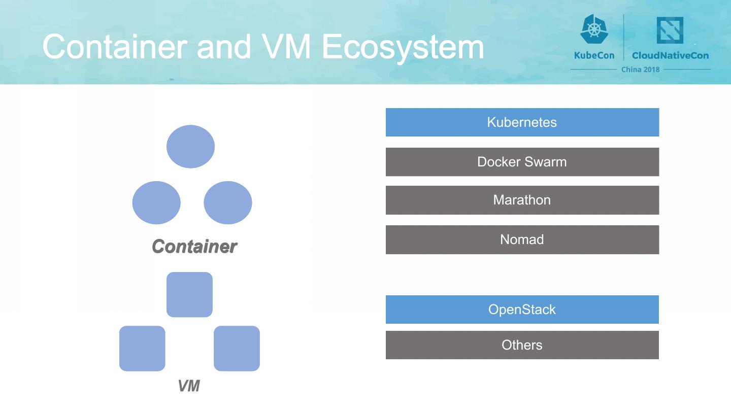 2 .Container and VM Ecosystem Kubernetes Docker Swarm Marathon Nomad Container OpenStack Others