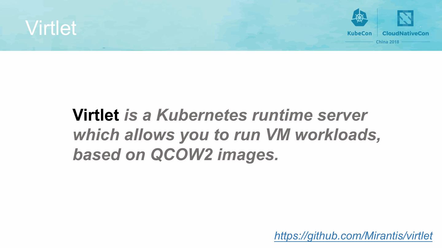 5 .Virtlet Virtlet is a Kubernetes runtime server which allows you to run VM workloads, based on QCOW2 images. https://github.com/Mirantis/virtlet