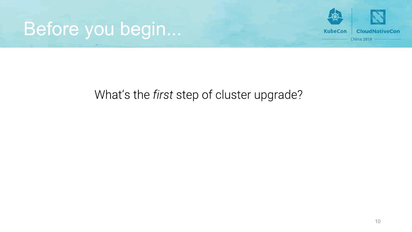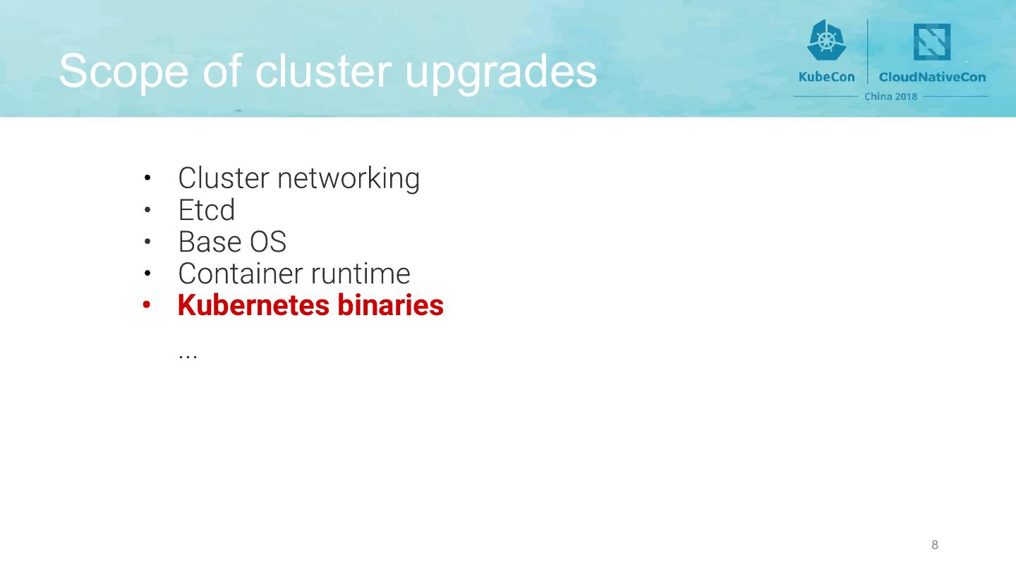 8 .Scope of cluster upgrades • Kubernetes binaries 8