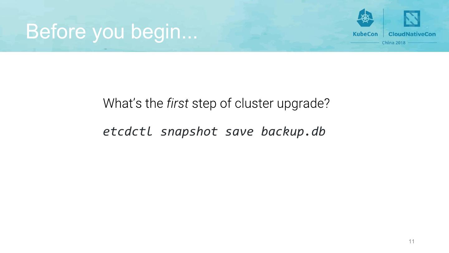 11 .Before you begin... etcdctl snapshot save backup.db 11