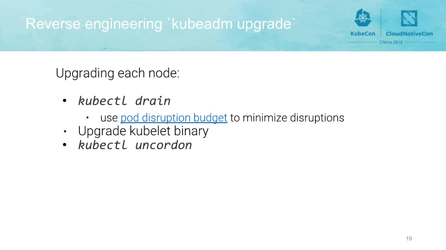 19 .Reverse engineering `kubeadm upgrade` • kubectl drain • kubectl uncordon 19