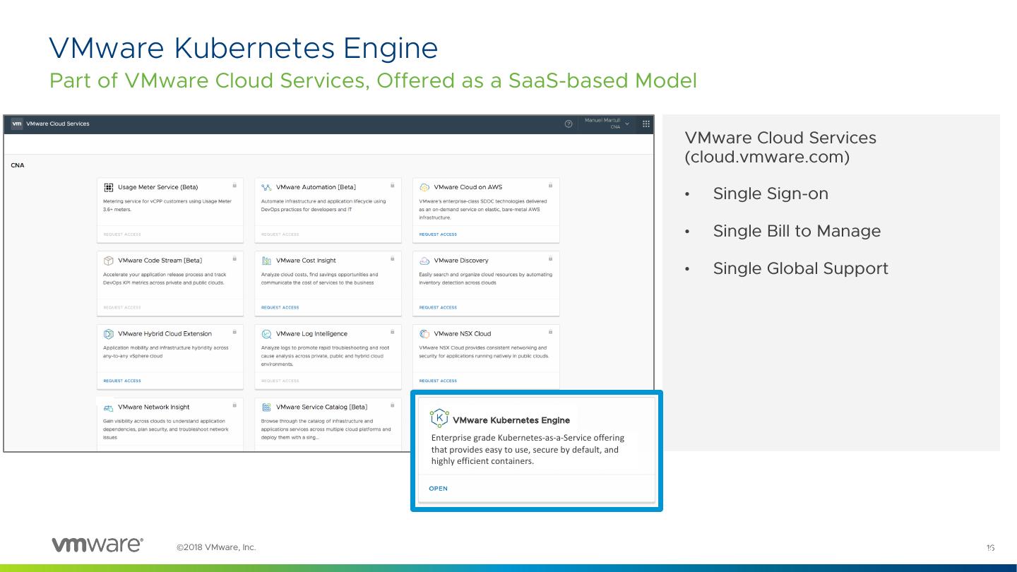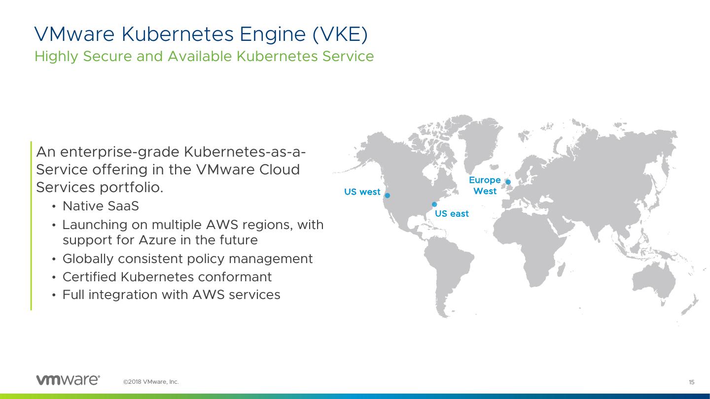 14 .VMware Kubernetes Engine (VKE) ©2018 VMware, Inc. 14