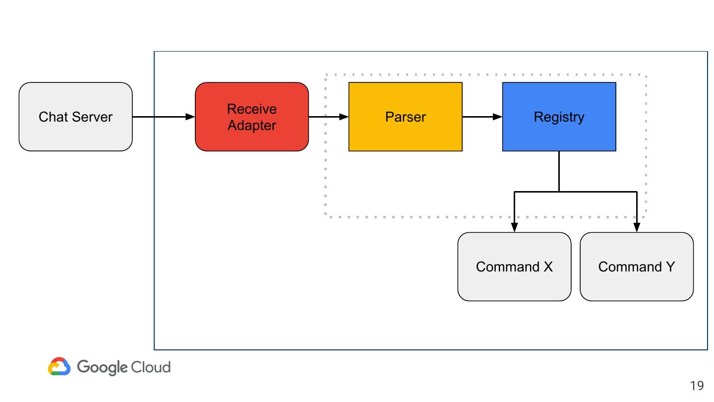 19 . Receive Chat Server Parser Registry Adapter Command X Command Y 19