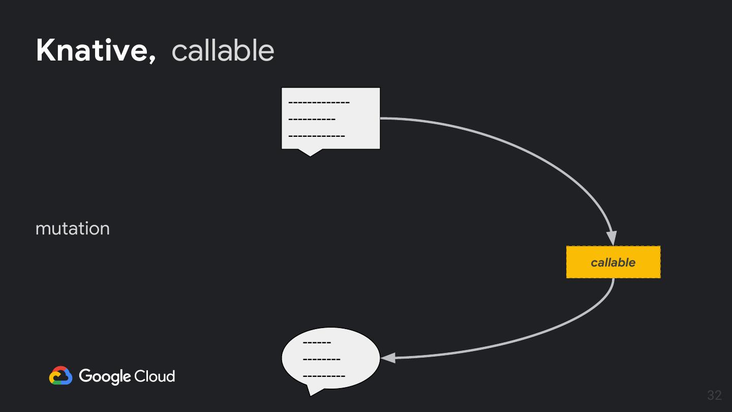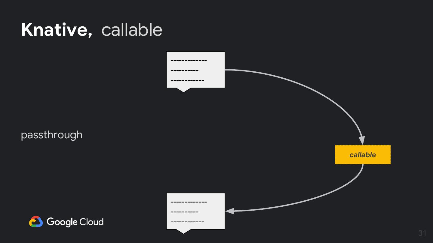27 . Knative, principled eventing objects Eventing constructs : ● sources (producer) sources ● Channel (delivery) ● Subscription (linkage) Channel ● callable (custom functions) Subscription callable Channel 27